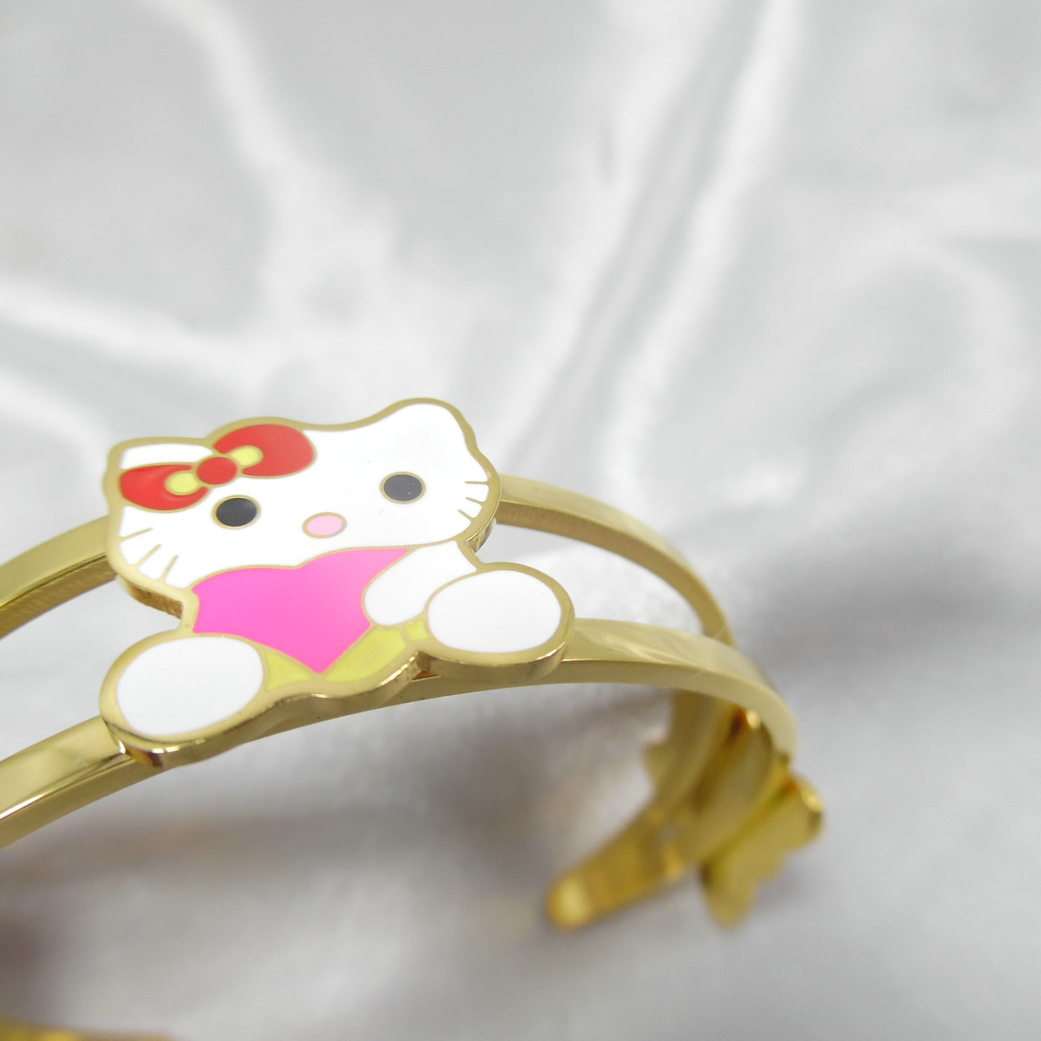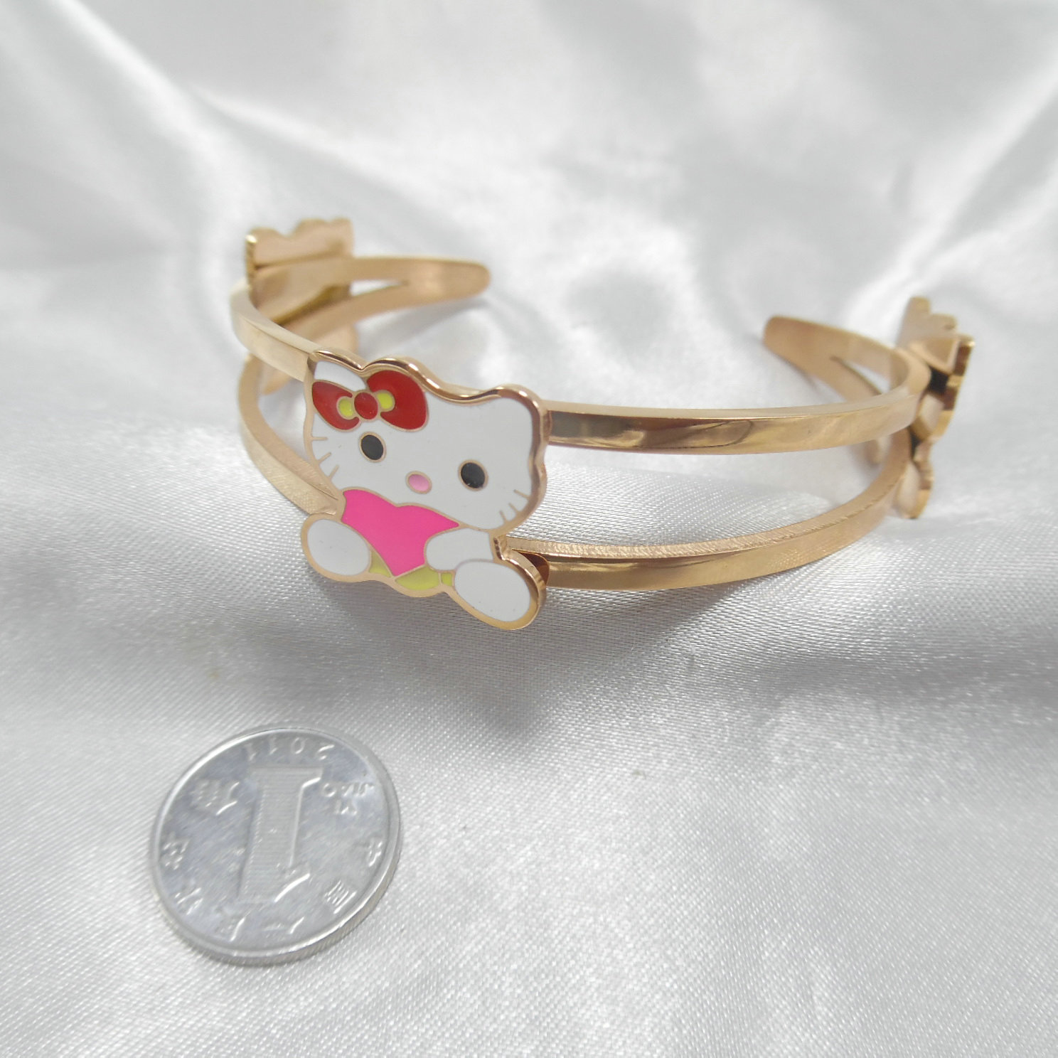 医用钛钢18K玫瑰金猫咪童趣时尚可爱开口手镯手环防敏不掉色335