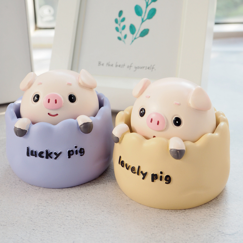 猪猪汽车摆件摇头公仔中控台可爱小猪办公桌面车载V车内装饰品礼