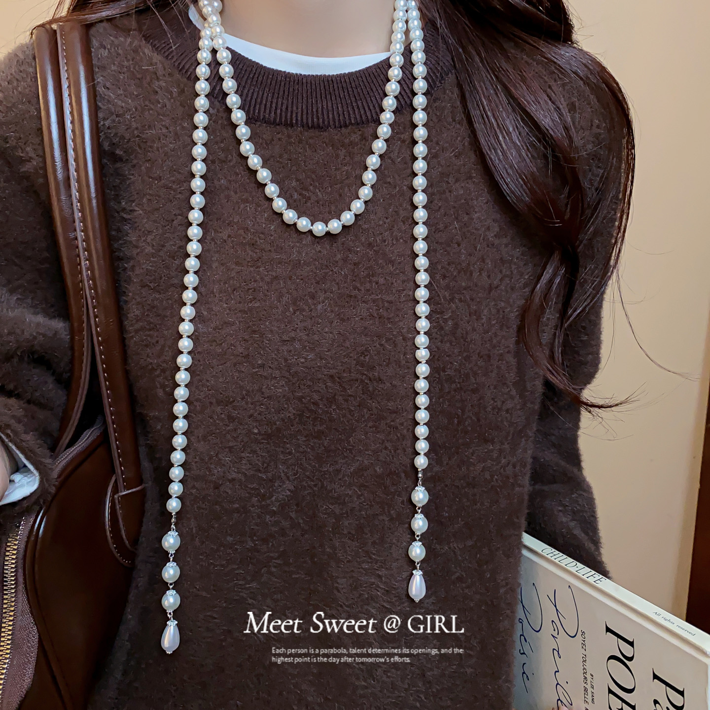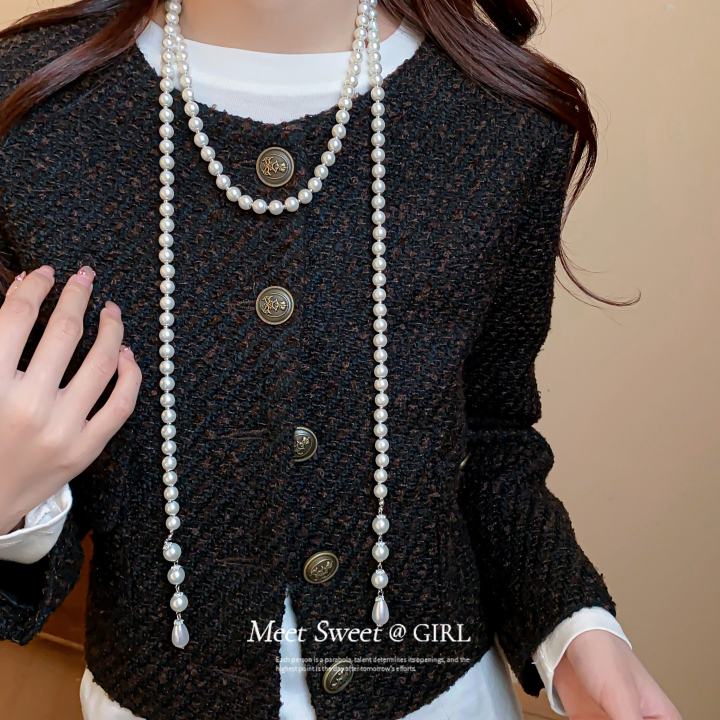 白色珍珠串珠双层叠戴项链女2025新款高级感毛衣链轻奢气质配饰