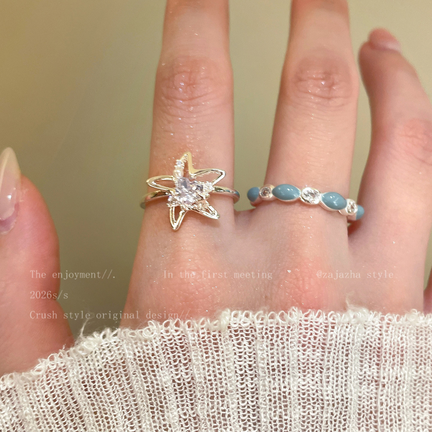 浪屿流光~蓝色海星锆石开口戒指女高级感海边装饰食指戒叠戴配饰