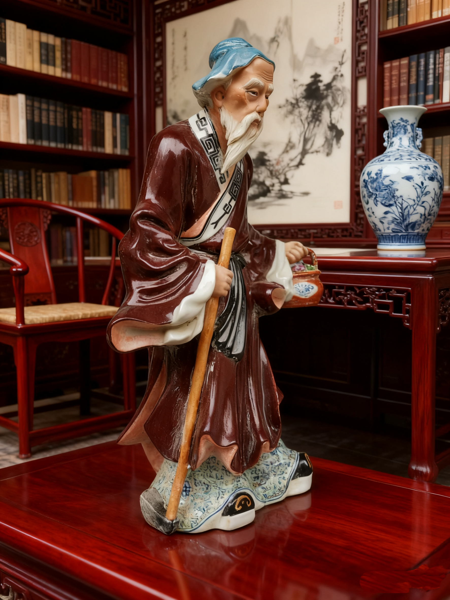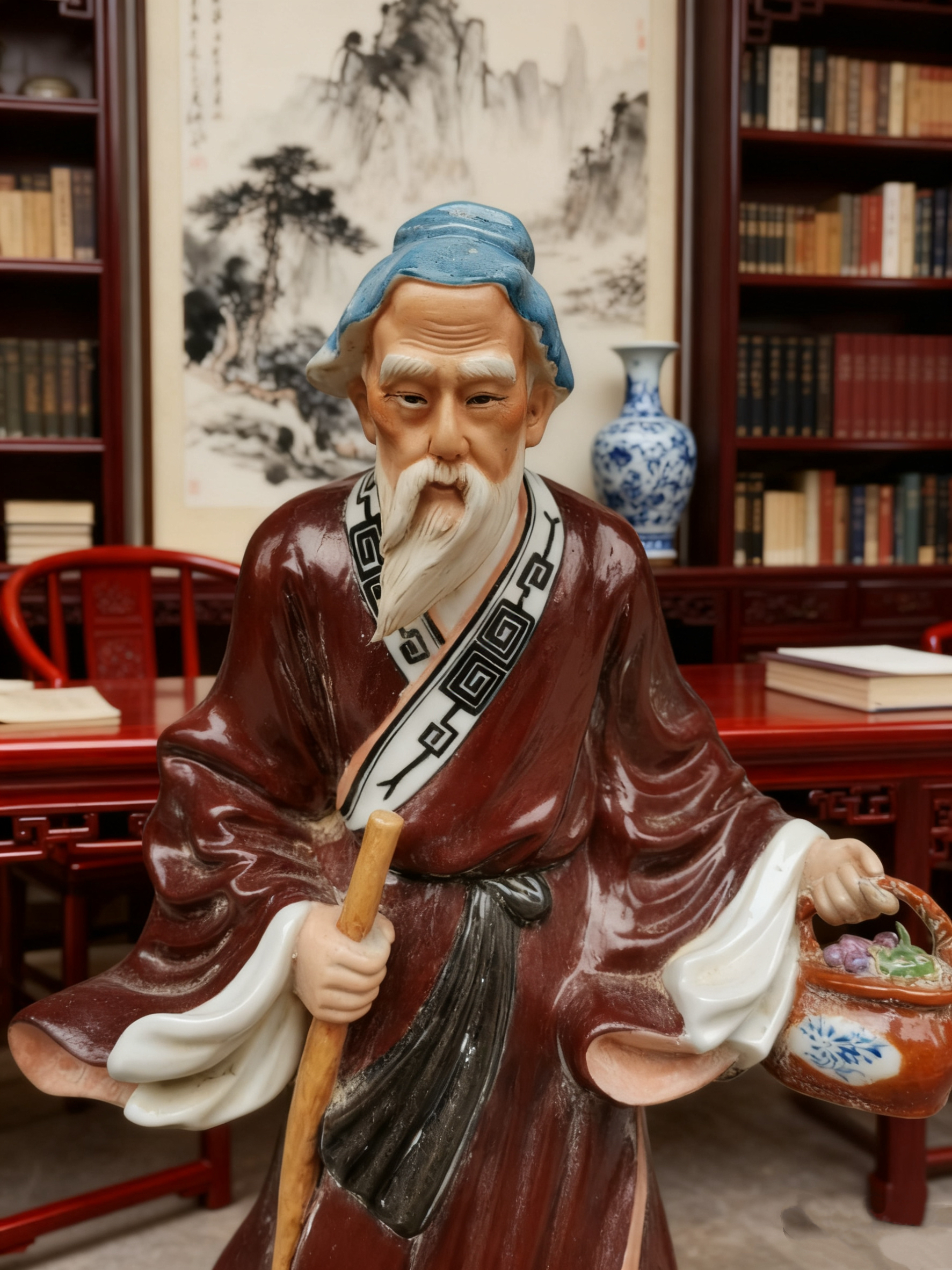 景德镇陶瓷药王神像孙思邈像站神医华佗扁鹊医生李时珍像摆件34cm