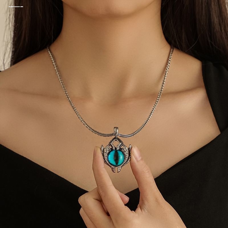 蓝色项链女欧美复古恶魔天使之眼吊坠锁骨链彩色毛衣链