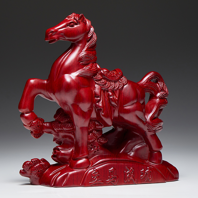 红色木马摆件马到功成实木马的吉祥物木头生肖马属火的摆件工艺品