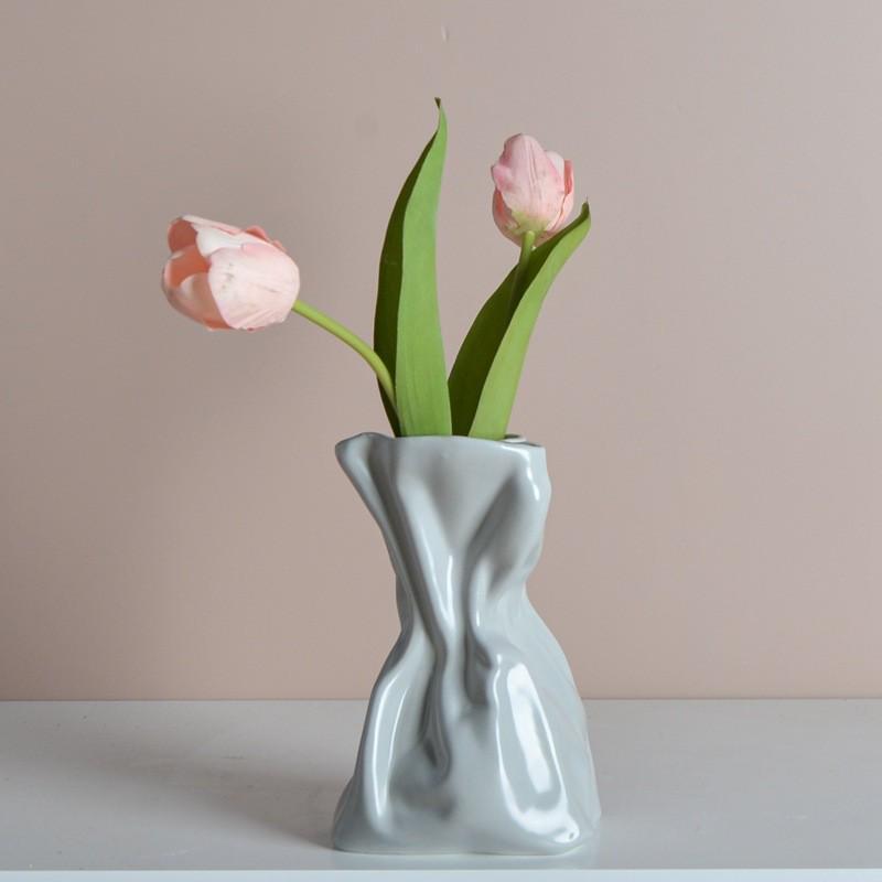 热卖ins奶油风颜高值创意折纸褶皱不规则陶瓷花瓶客厅餐桌摆