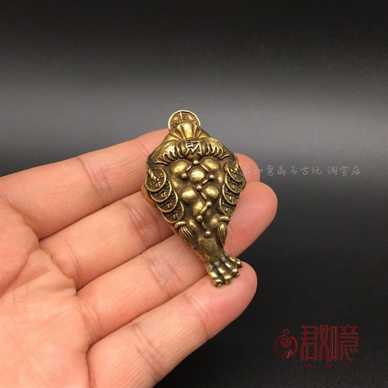 实心黄铜金蟾摆i件 铜钱钱串迷你小金蟾手把件 铜艺包浆铜器