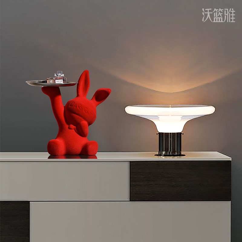 兔子摆件玄关钥匙收纳托盘红色结婚礼物乔迁之喜客厅酒柜装饰品