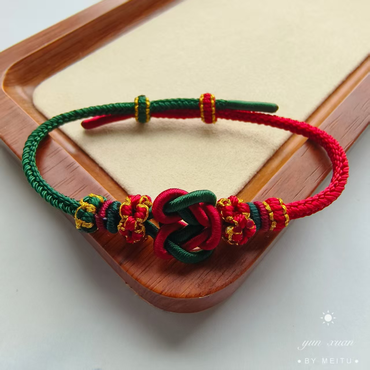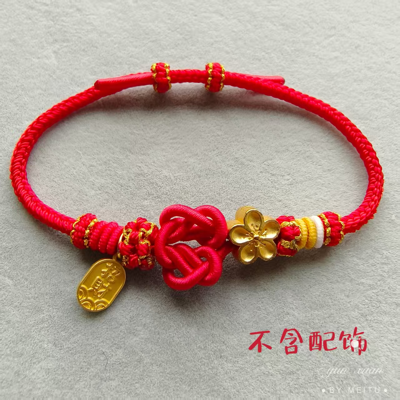 连心结红绳手链编织精致桃花手绳半成品可穿转运珠送闺蜜女友礼物