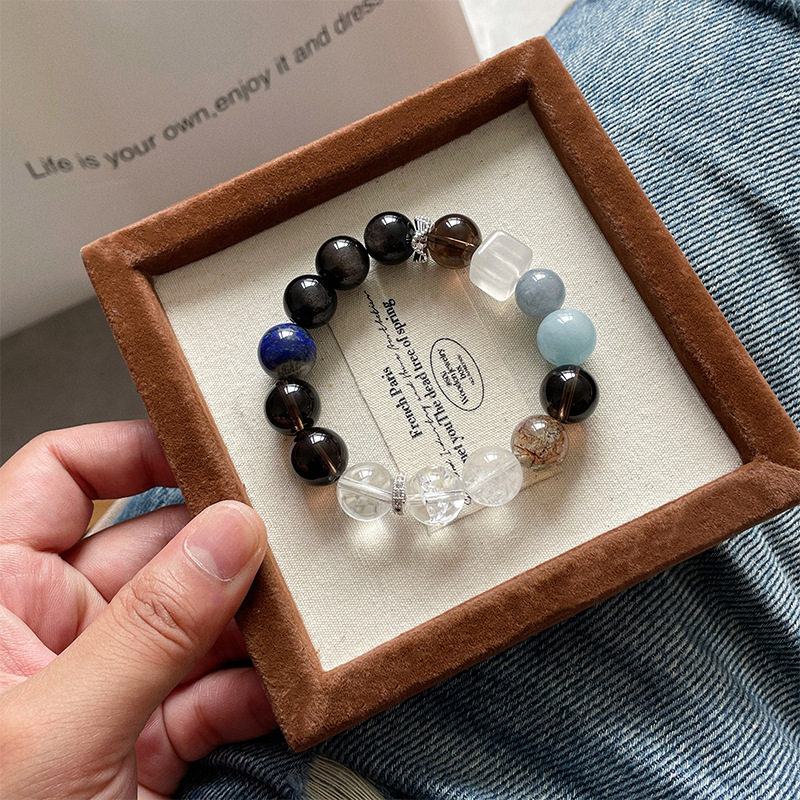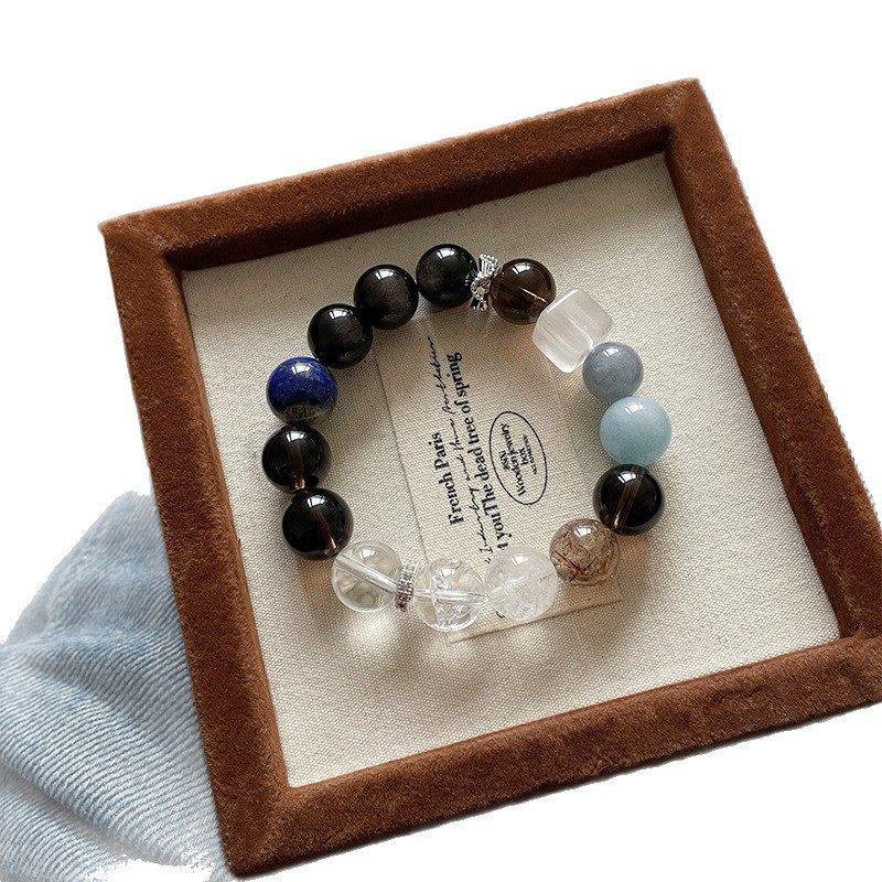 【多蓝星】天然白水晶银曜石水晶手串原创小众设计女小清新手链