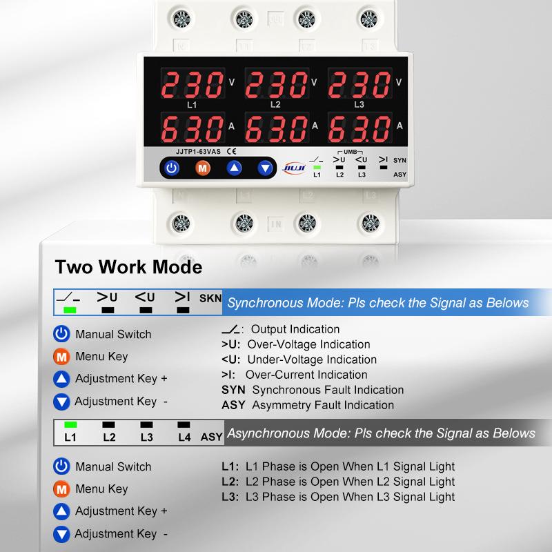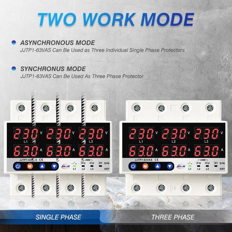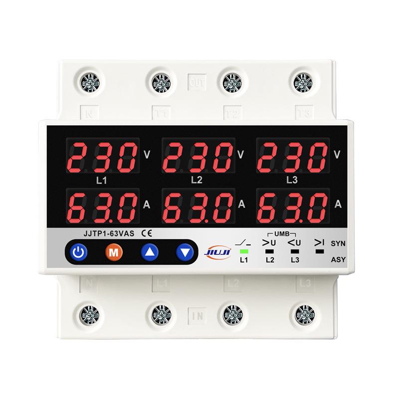 分路段三相可调数显自复式过欠压限流保护器过载63A缺零缺相220v