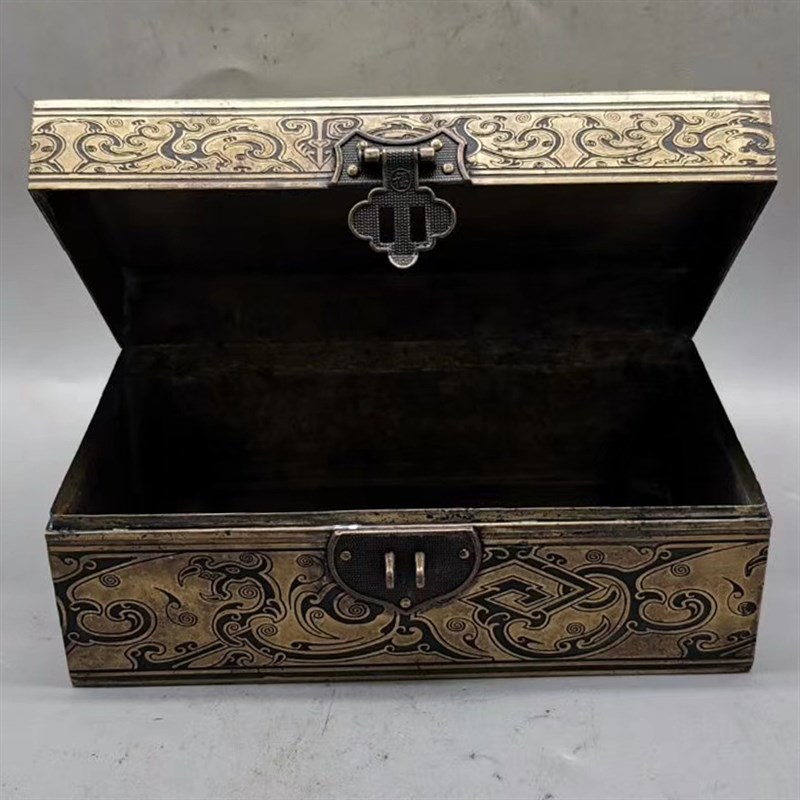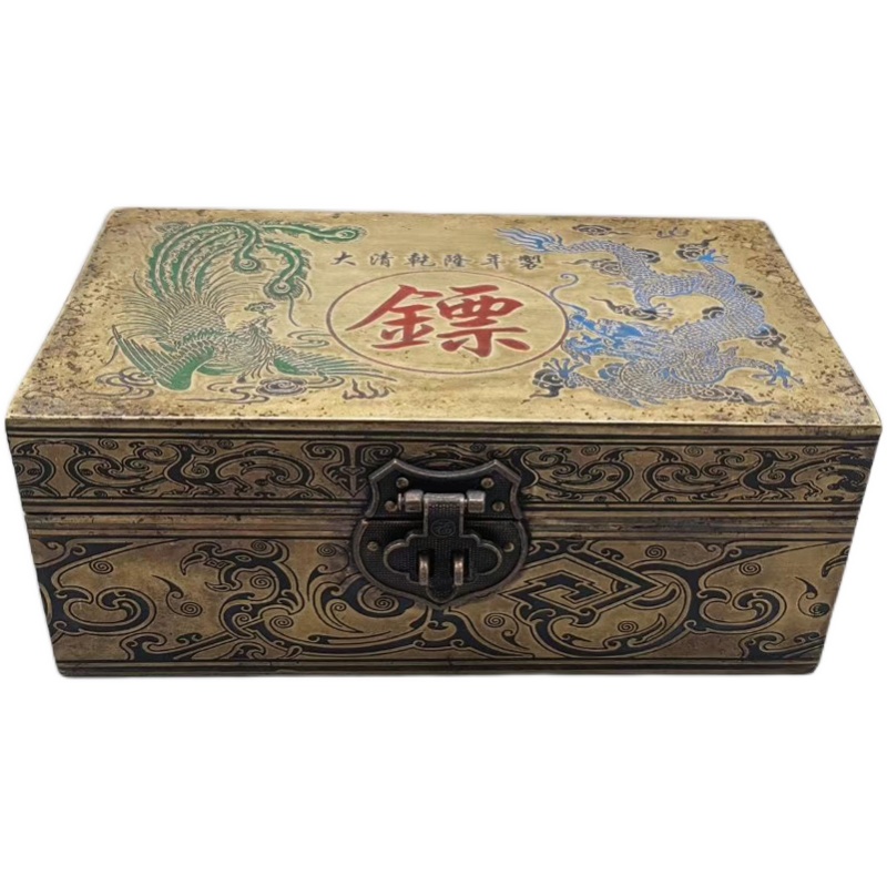 仿代宫廷首饰盒古玩收藏收纳盒百宝箱纯铜浮雕方盒龙凤富贵盒