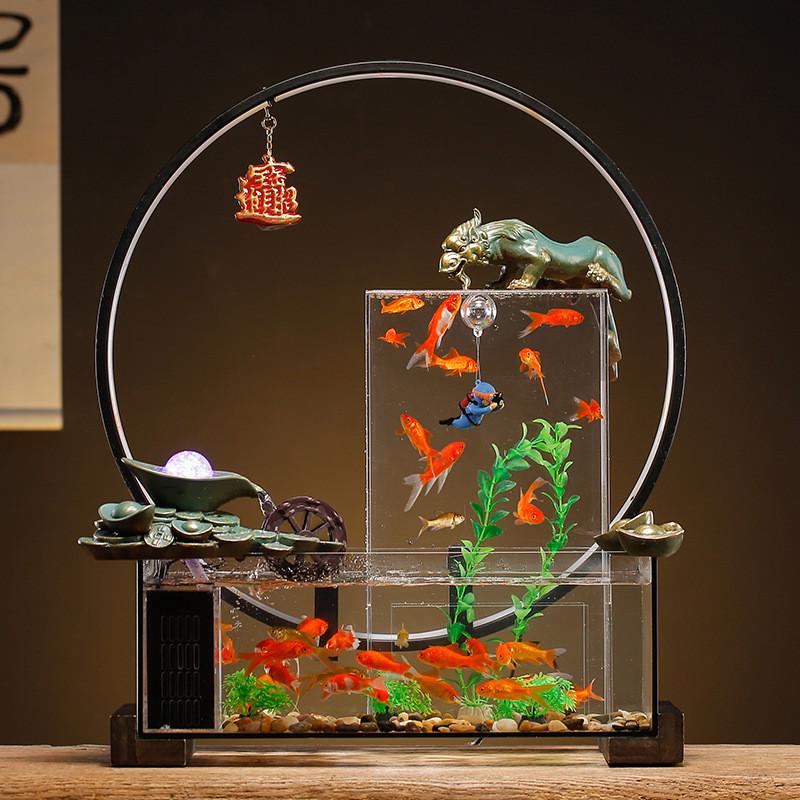 热销摆件循环流水小型玻璃金鱼缸免换水办公室桌面客厅造景水族箱