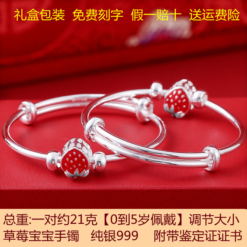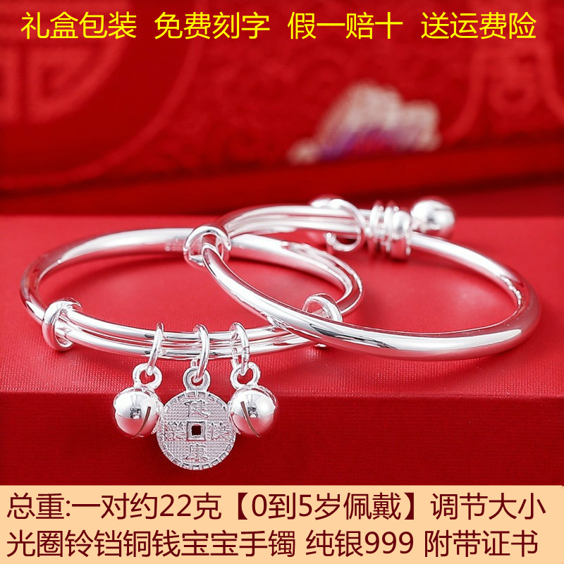 福凤茗足银9999纯银宝宝手镯婴儿男女小孩手镯子满月周岁生日礼物