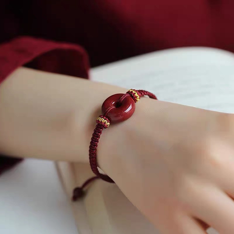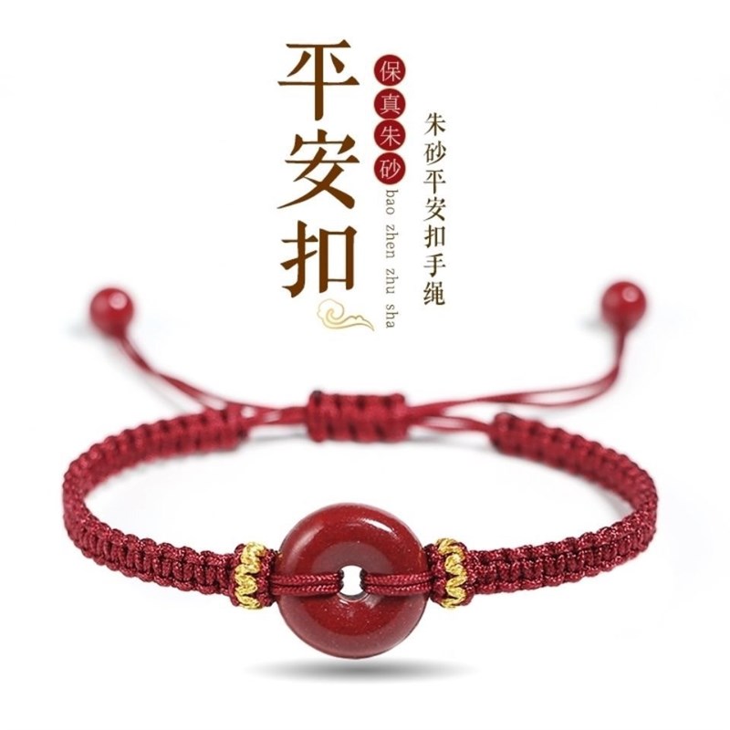 天然朱砂平安扣手链男女款蛇年本命年礼物红手绳红绳编织情侣手串