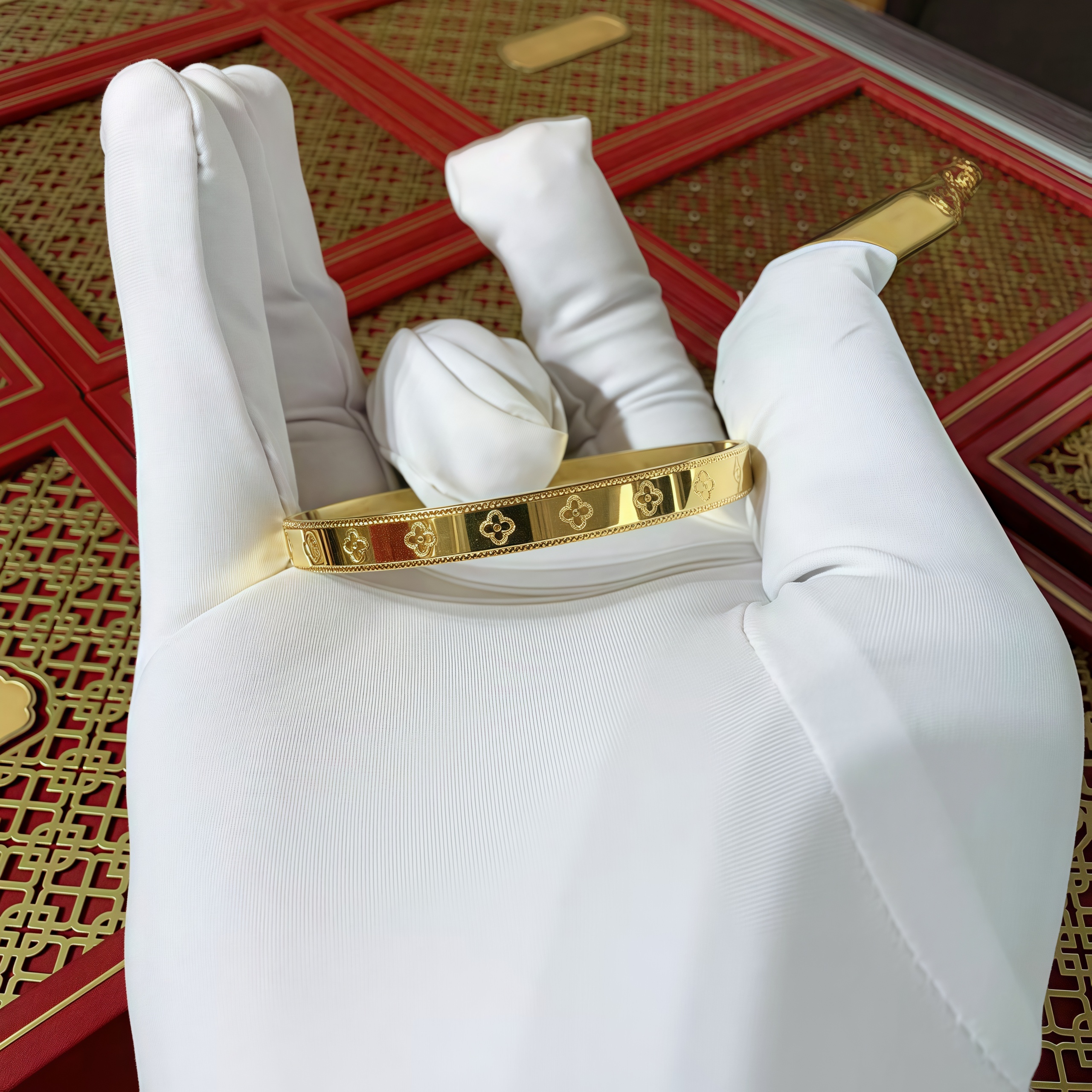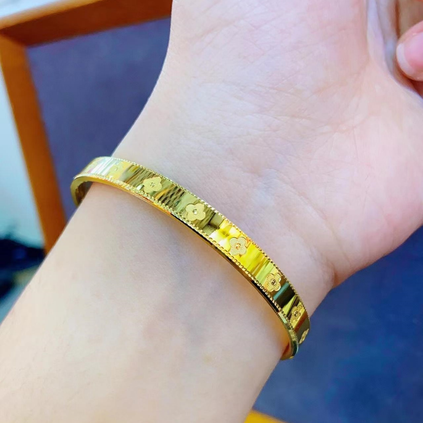 古法传承黄金包银幸运四叶草推拉手镯实心转运手环送女友生日礼物