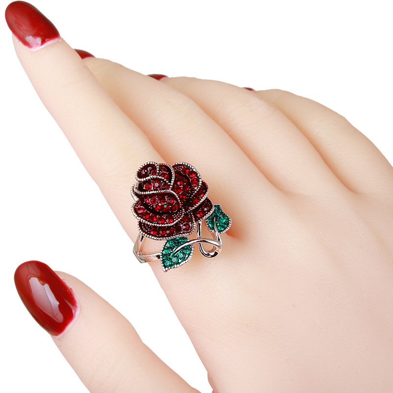 精致夸张水钻玫瑰花食指戒指女时尚个性装饰指环潮小众设计高级感