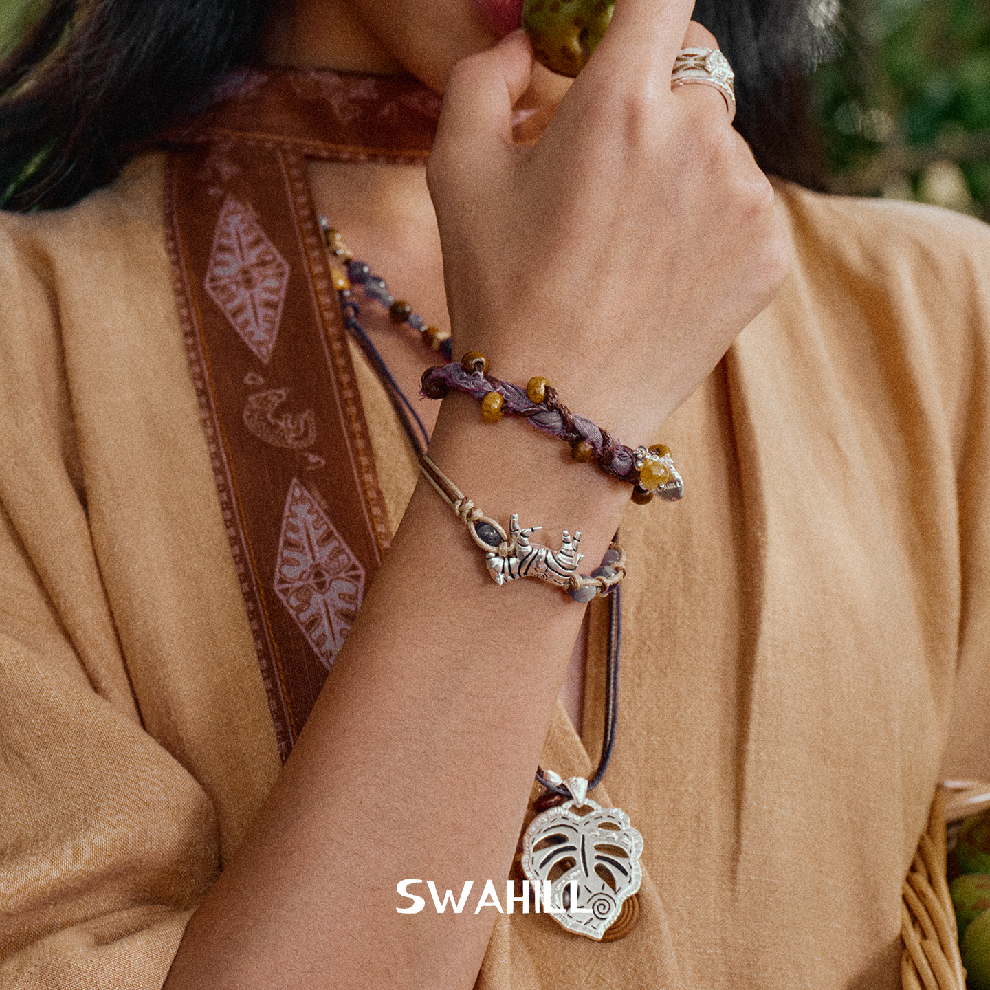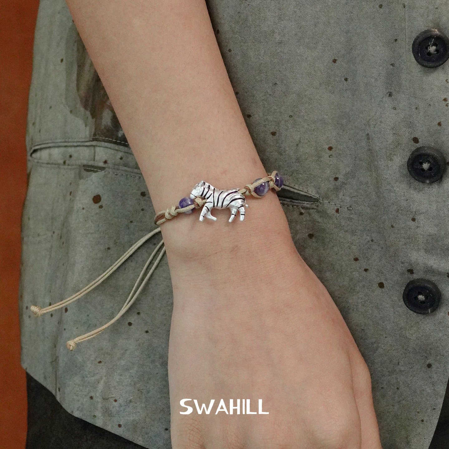 SWAHILL斯瓦山丘 斑马编织手绳 原创设计小众复古度假感手链 默叙