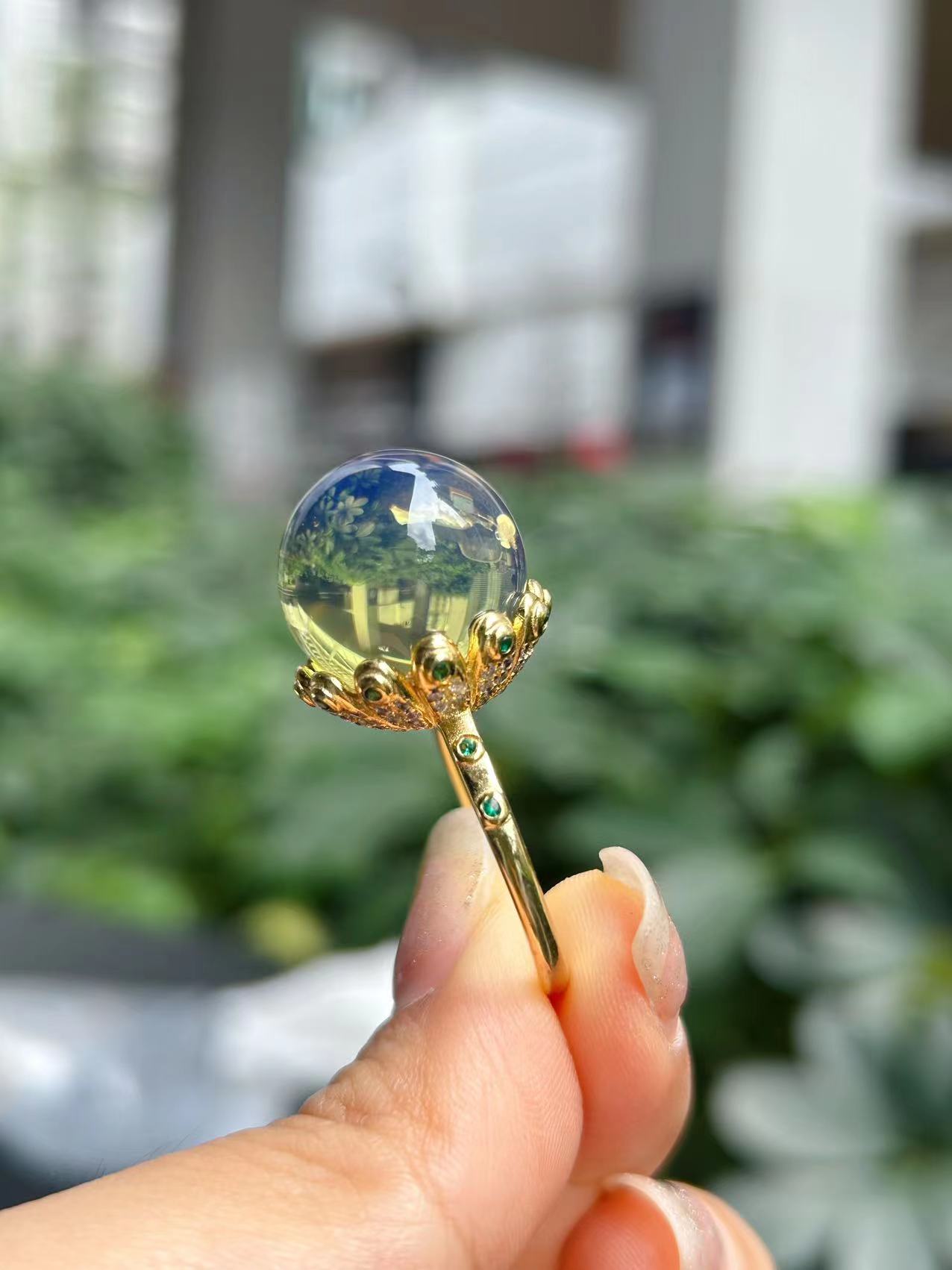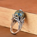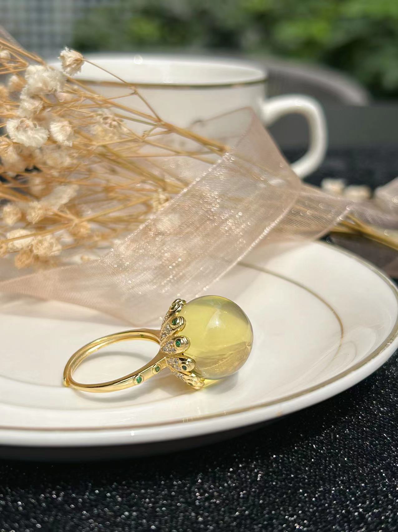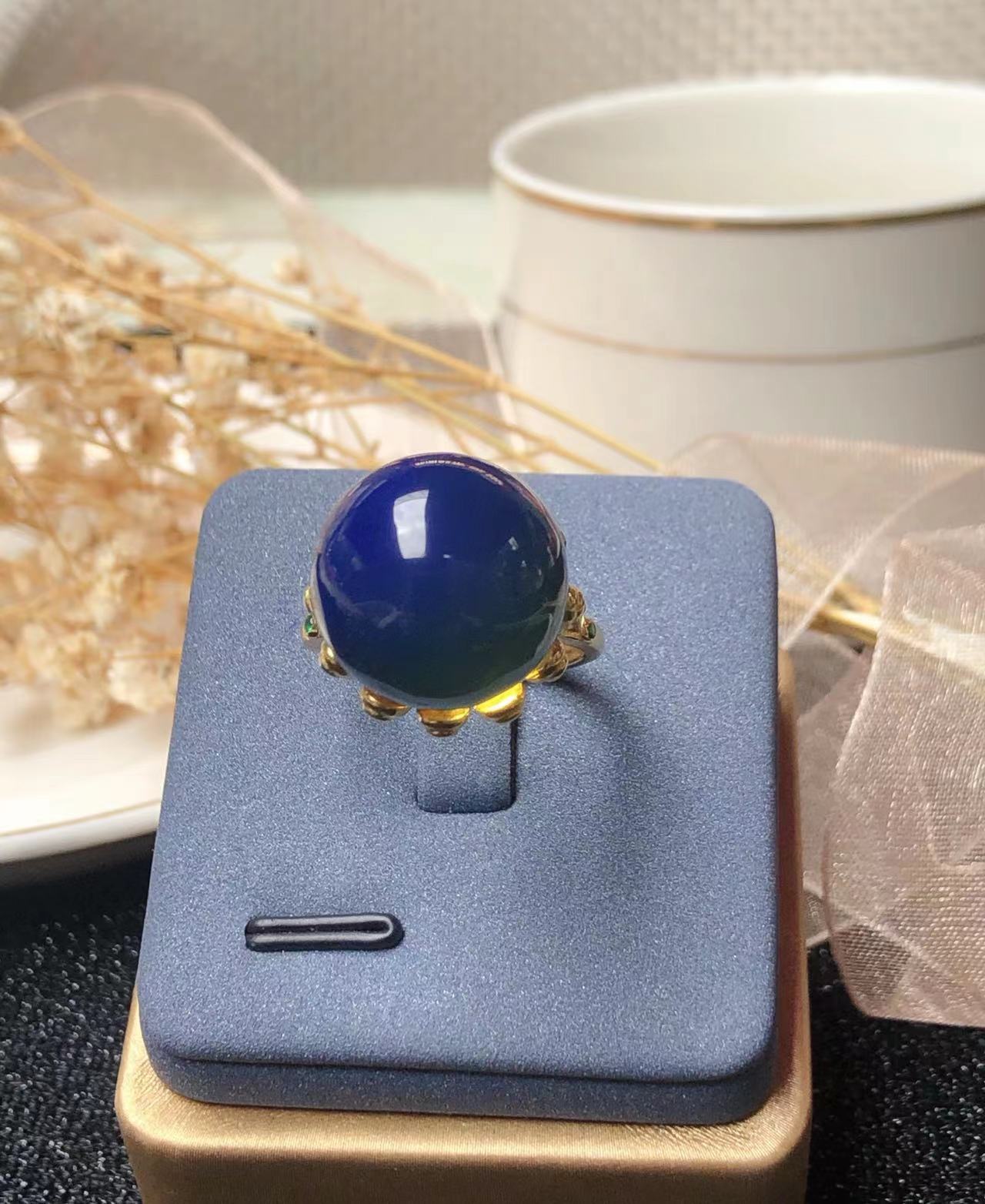 多米尼加墨西哥蓝珀戒指 925银镶16mm珠子琥珀戒指活口包邮礼盒