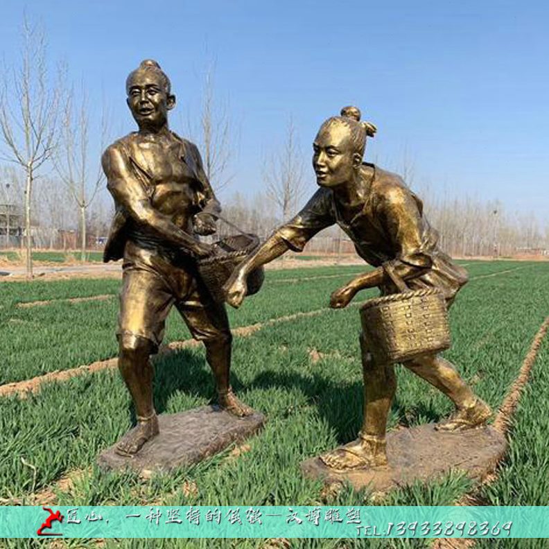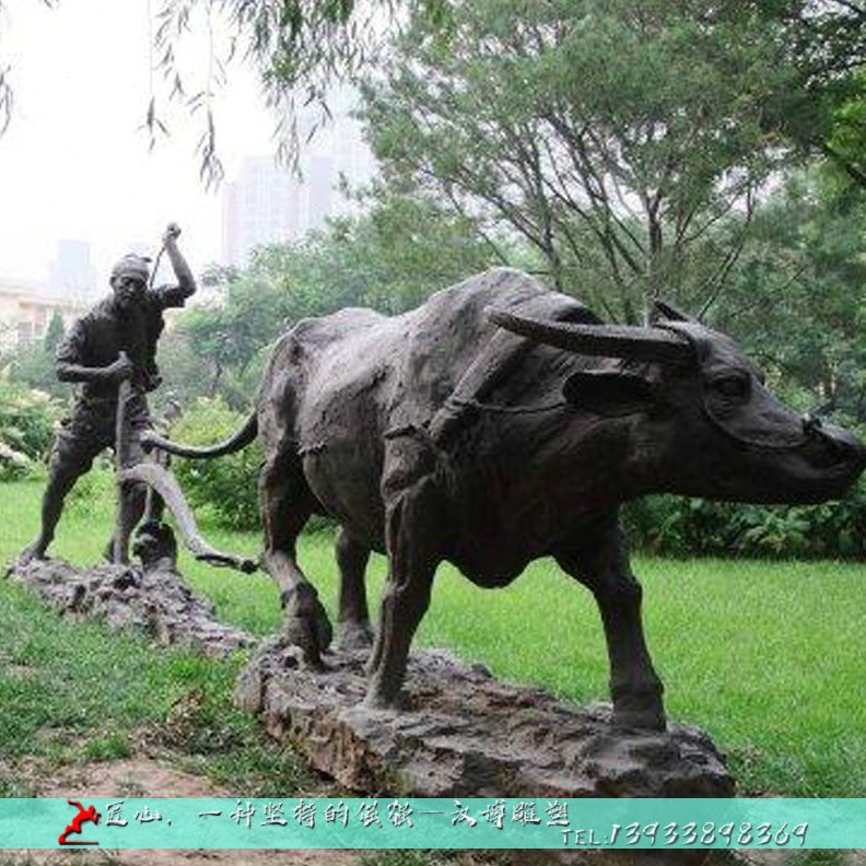 文化仿农耕定制户外耕人物玻璃钢铜小雕塑牛大型铜铸雕塑摆件品