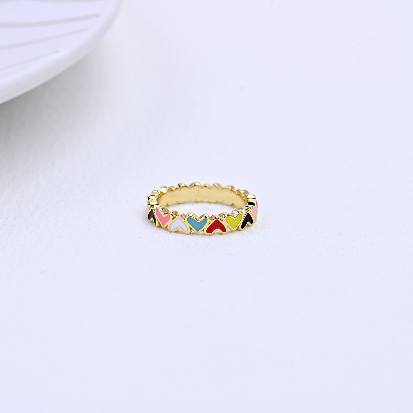 米粒小众轻奢ks法式设计师彩色爱心珐琅甜美炫彩戒指女指环高级感