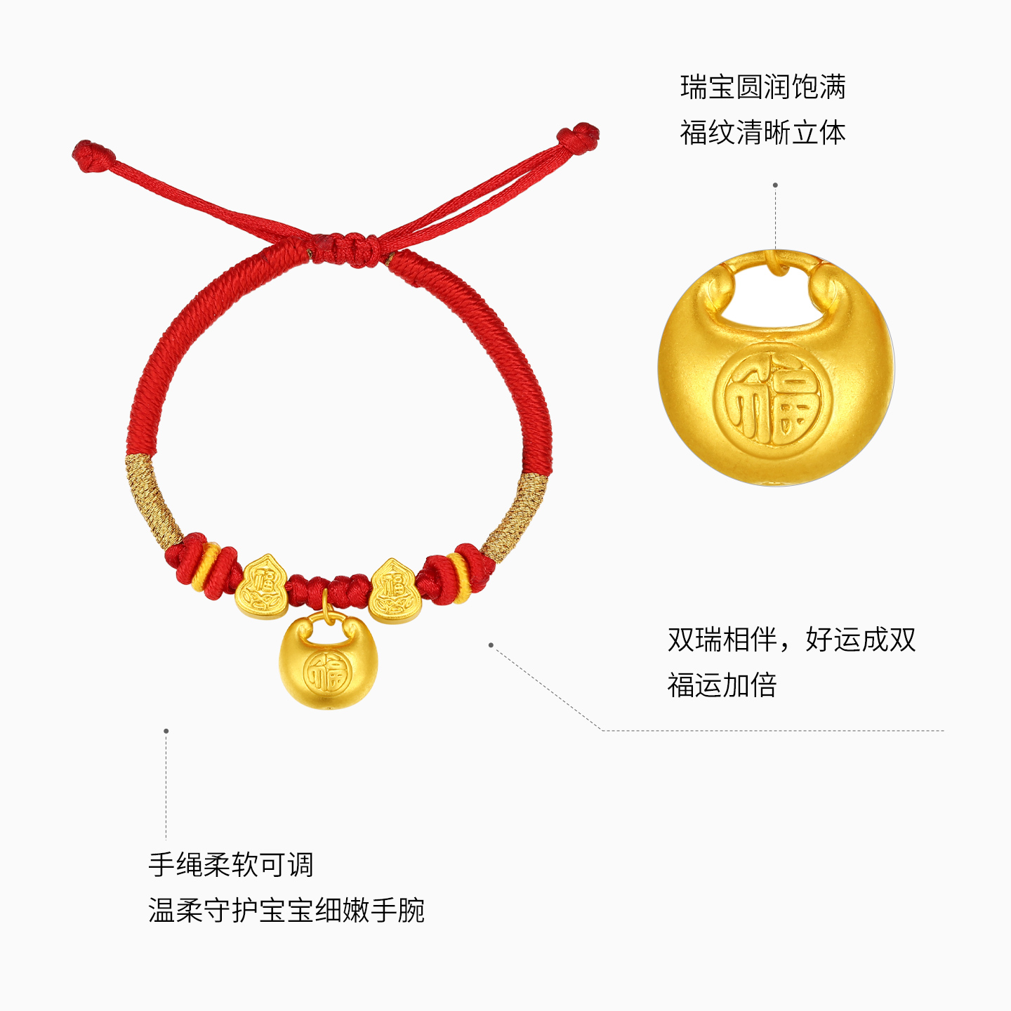 潮宏基宝护小胖福黄金手链足金手绳红绳5D硬金显大葫芦宝宝满月礼