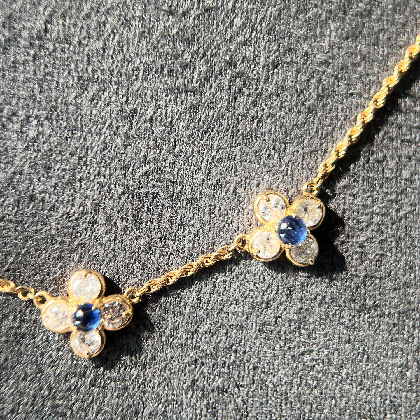 复古爆闪蓝色花朵项链女高级感轻奢小众设计气质百搭锁骨颈链配饰