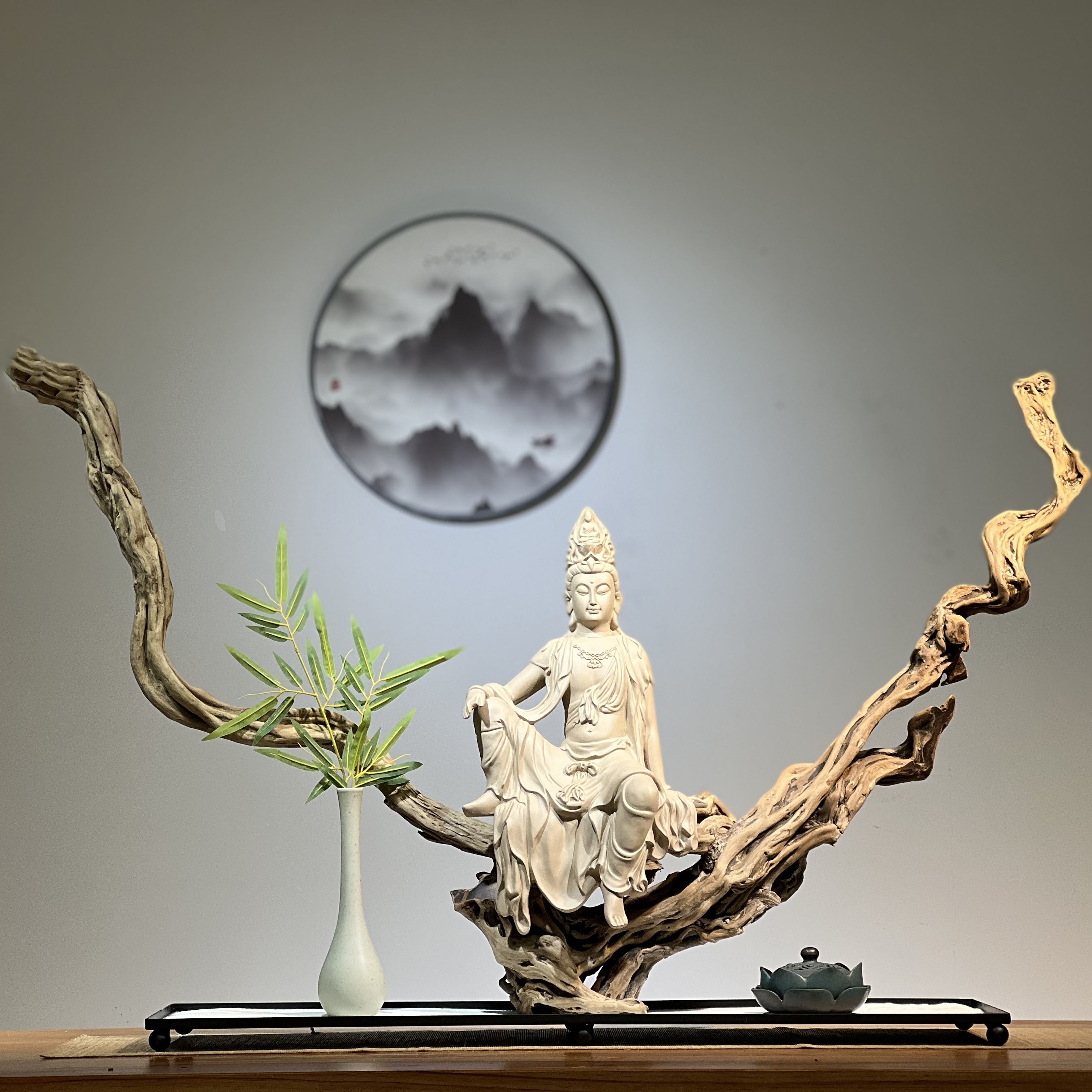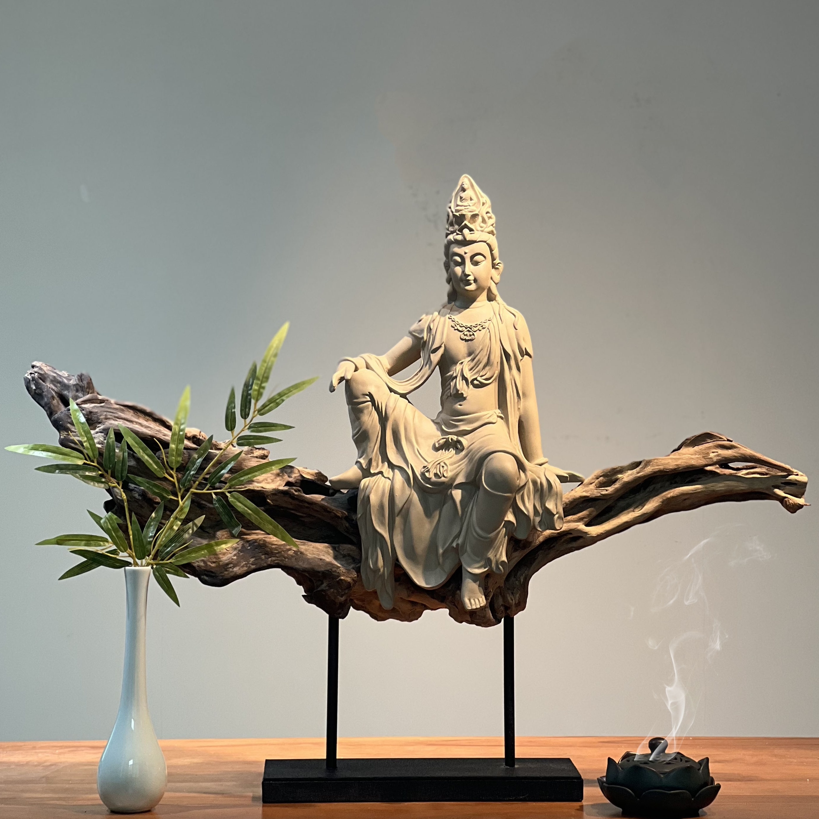 新中式佛像水月自在观音菩萨禅意供奉摆件玄关茶室客厅博古架装饰