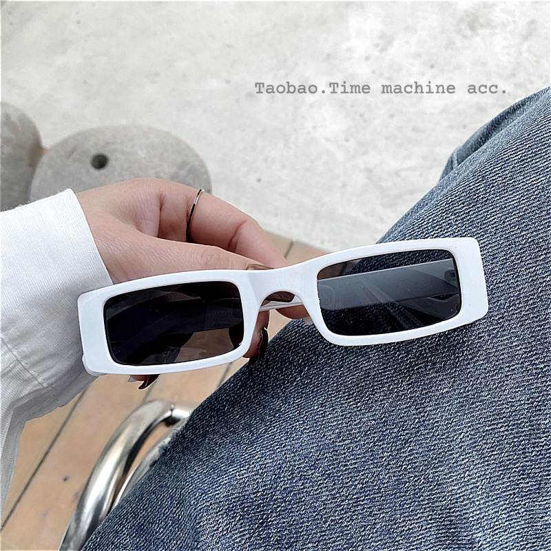 韩版潮ins窄边墨镜男女2025网红小脸白色街拍太阳镜方框防紫外线