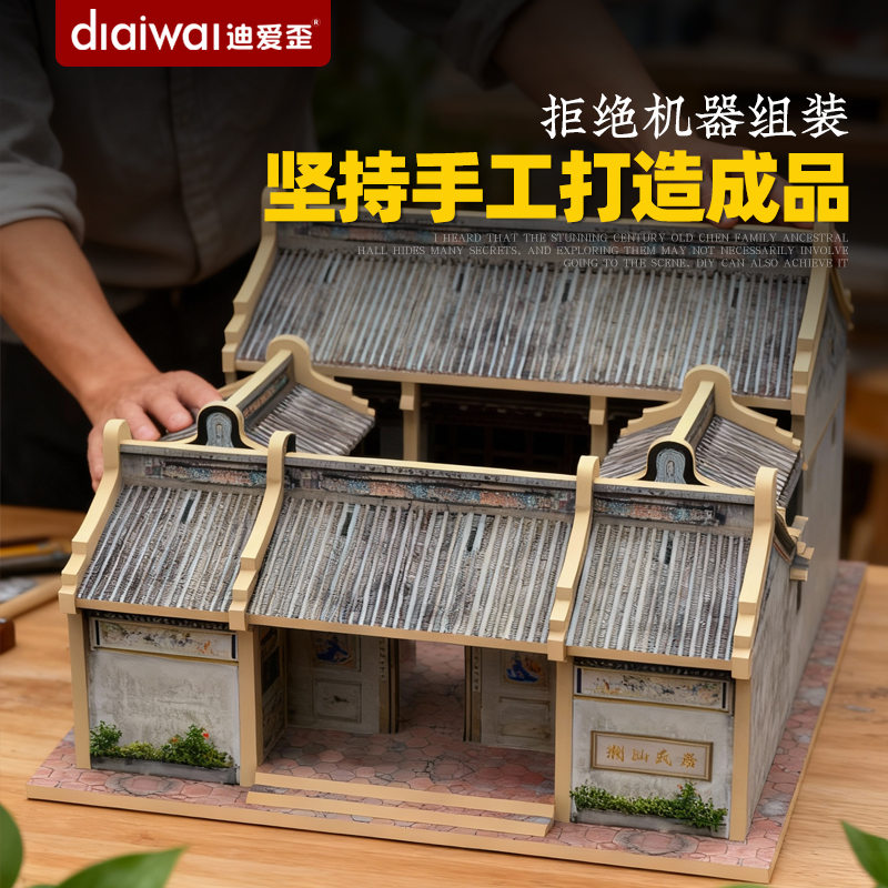 迪爱歪潮汕民居模型家宅团圆古建筑书房国风成品摆件木制纪念品