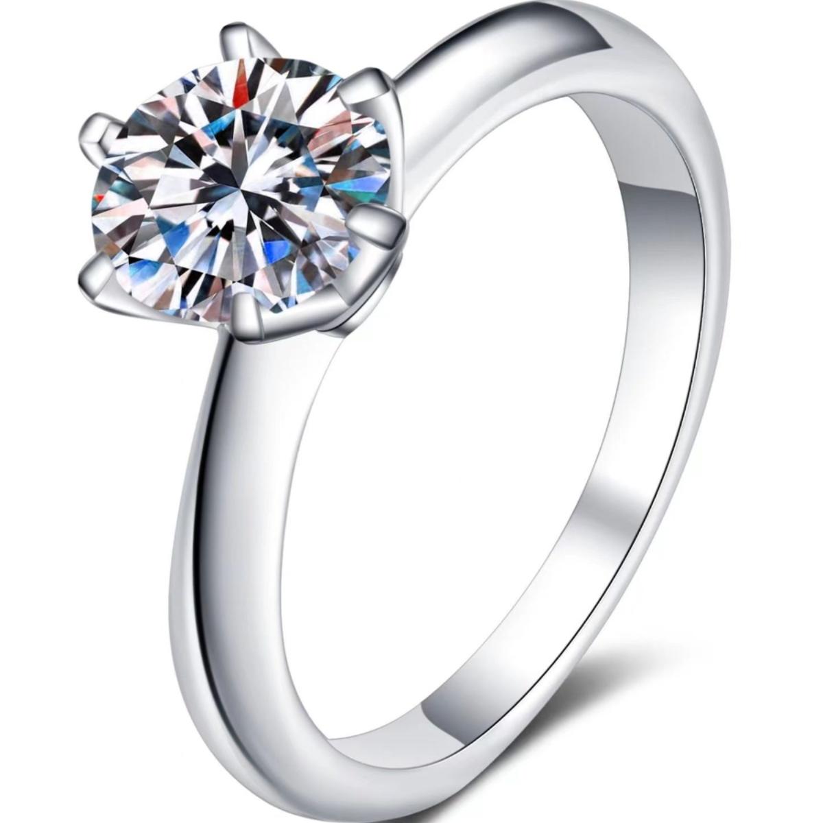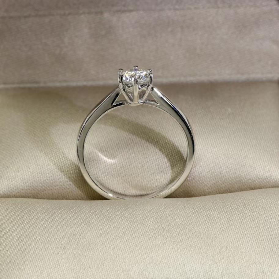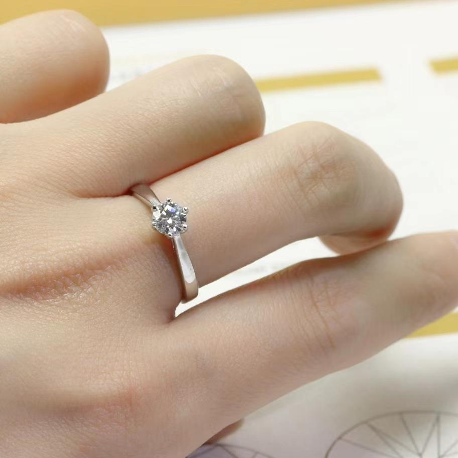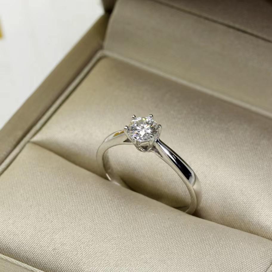 50分1克拉2克拉银镶经典六爪莫桑钻戒指火彩闪亮精致简约节日礼物