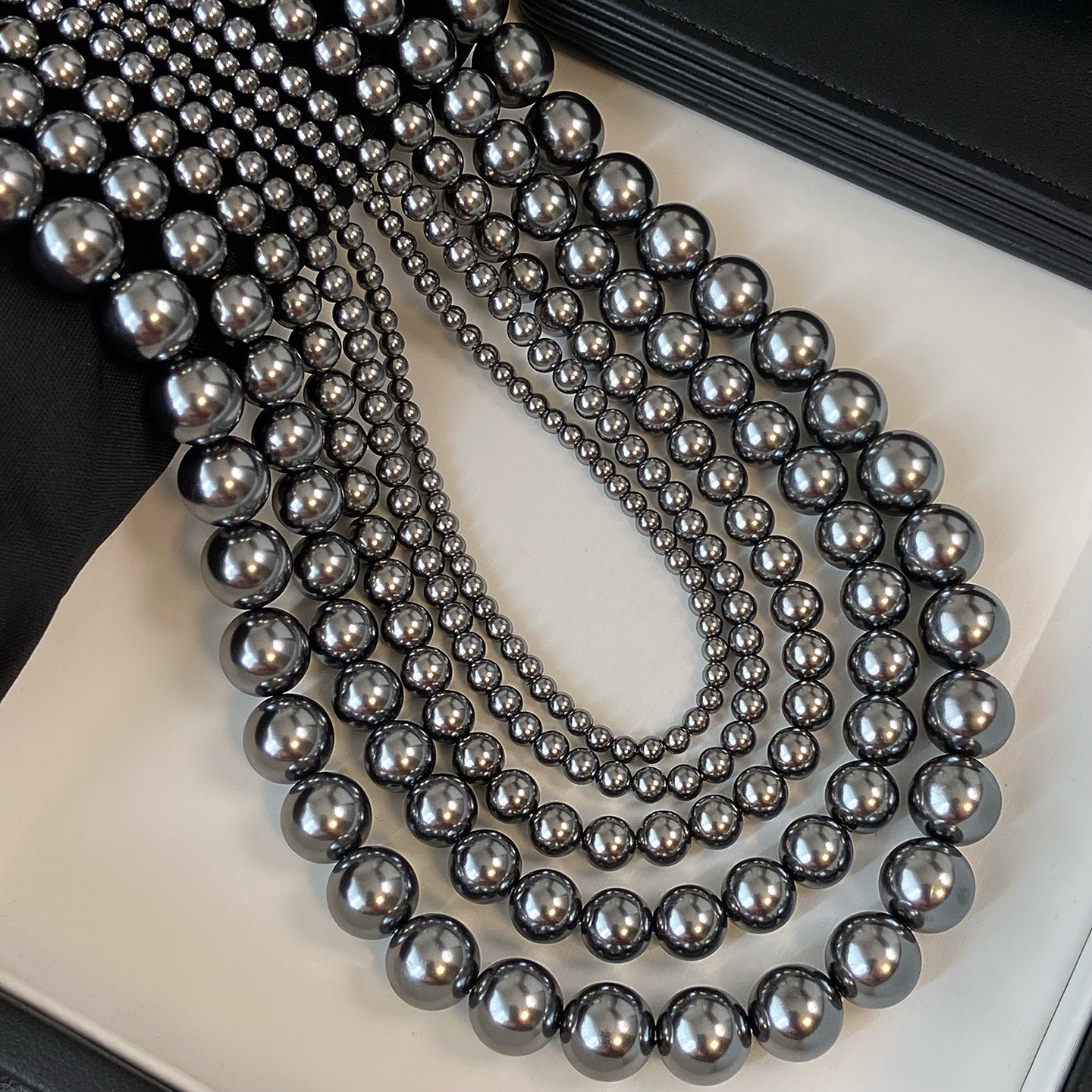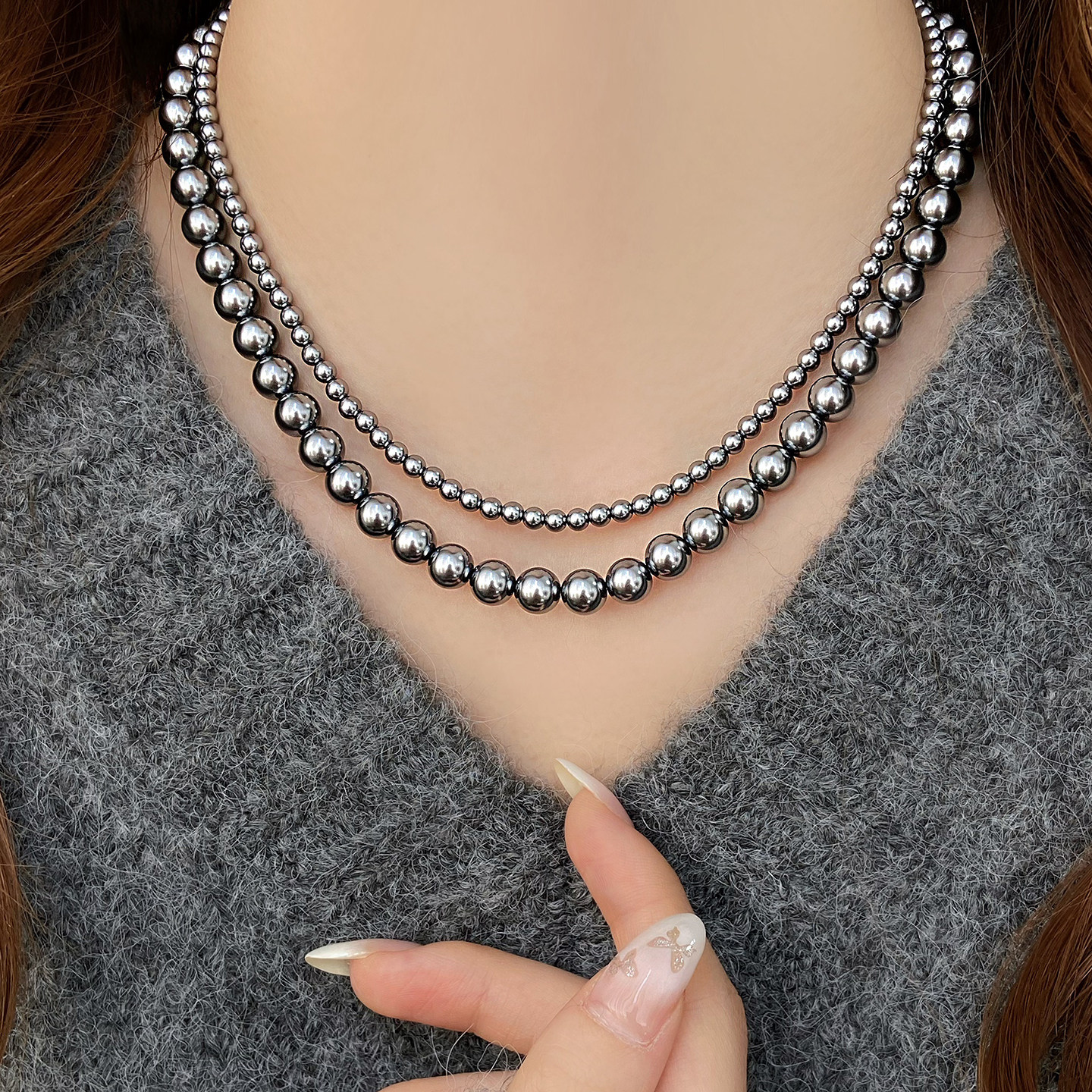 黑灰色高档珍珠简约项链女款2025新款锁骨链毛衣链轻奢小众配饰女