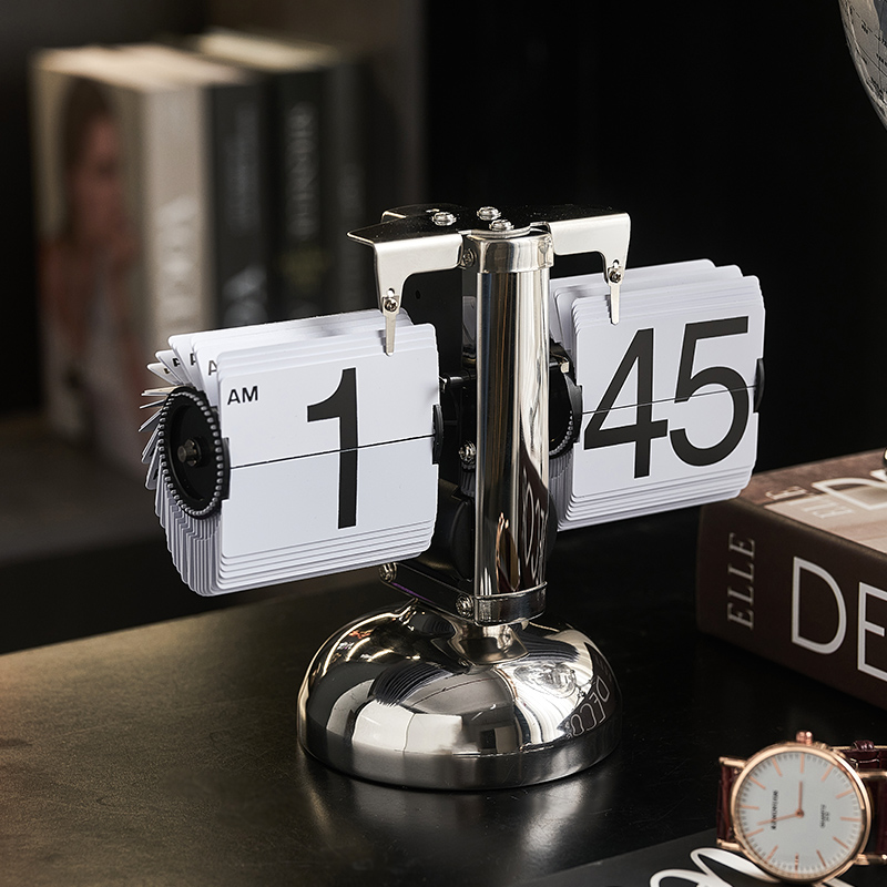 创意翻页机械时钟卧室书桌面科技感摆件家居客厅办公室书柜装饰品