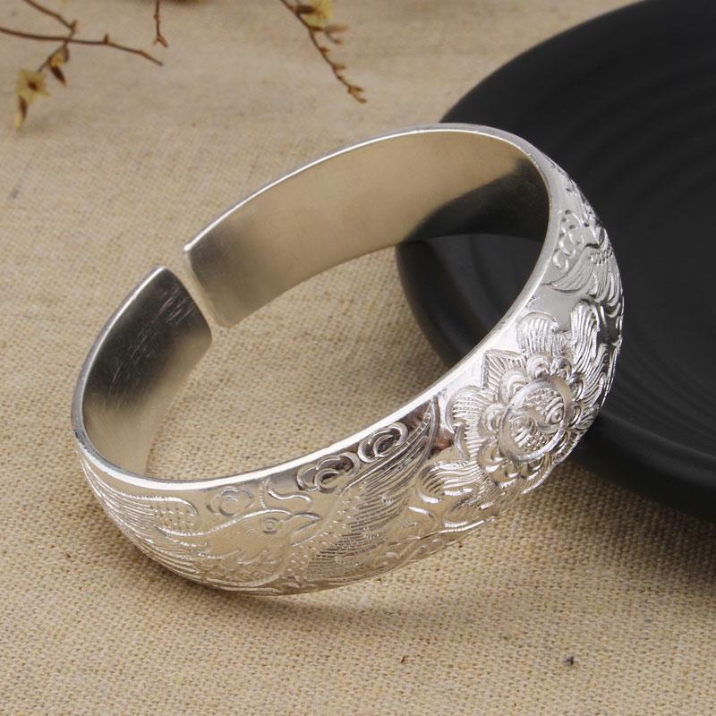 新款宽银手镯老式熟真999纯银工定做订手年轻尚女制士宽版面款时