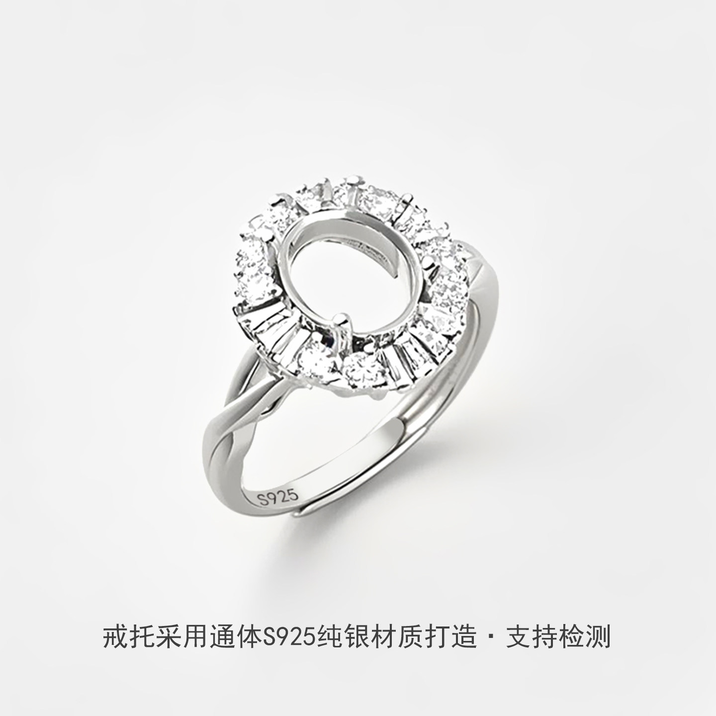 新款S925纯银戒指空托镶嵌玉石蜜蜡翡翠戒面戒托活口女款空托8*10