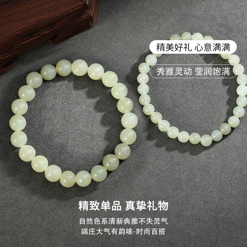 新中式天然和田玉手串女小众玉石圆珠手链时尚百搭散珠手饰