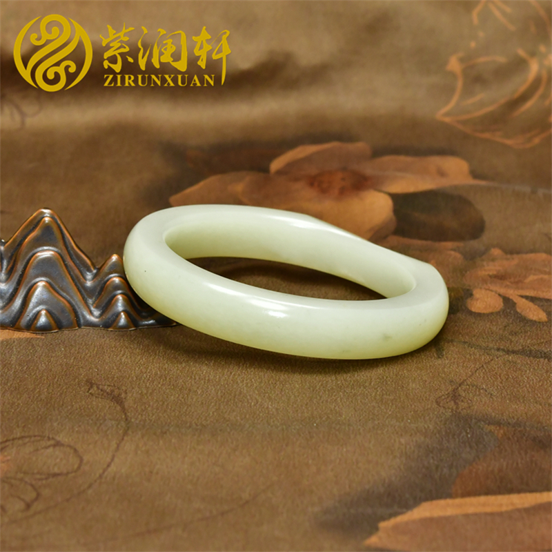 紫润轩新疆和田玉高青白籽料手镯清水皮方条正装籽镯60MM肥厚珍藏