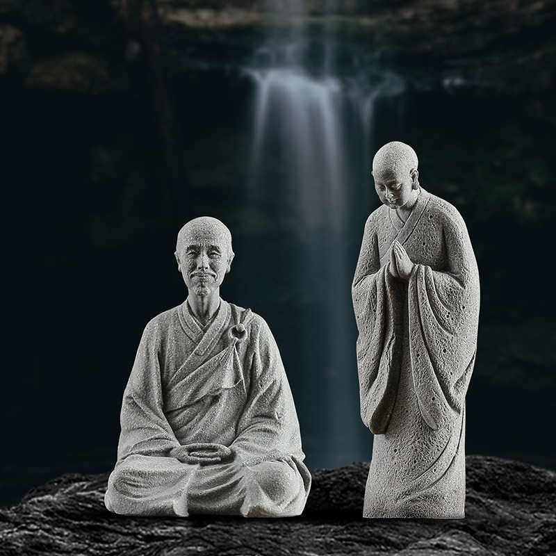 国潮文创达摩禅意人物桌面摆件鱼缸造景弘一法师佛像家居微景装饰