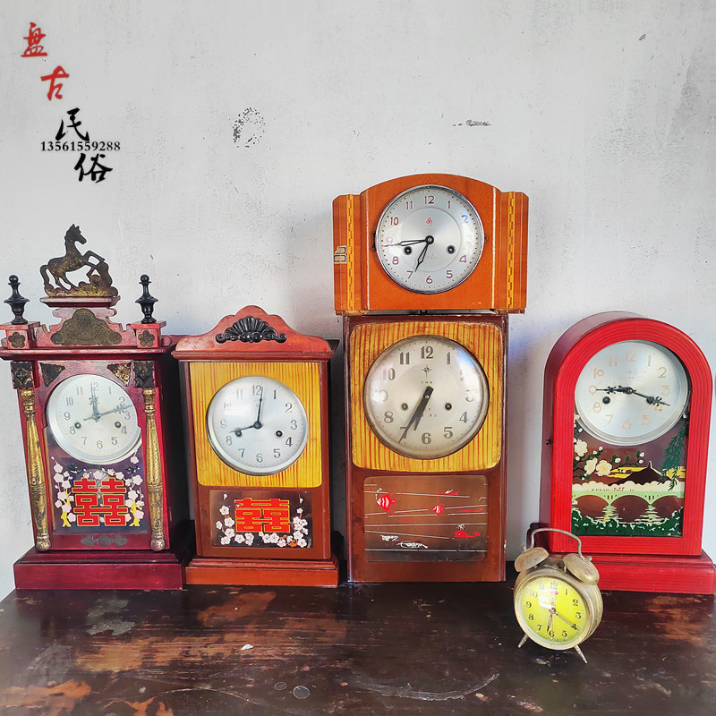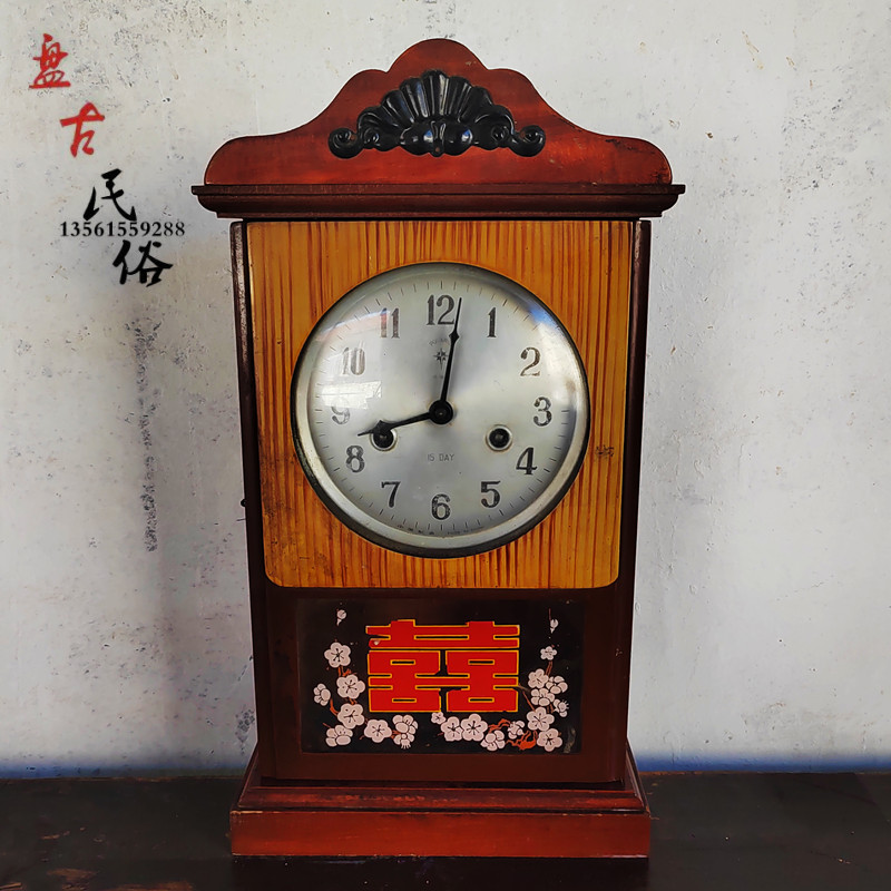 老式挂钟怀旧老物件摆件上弦机械钟表古董收藏装饰道具80年代座钟