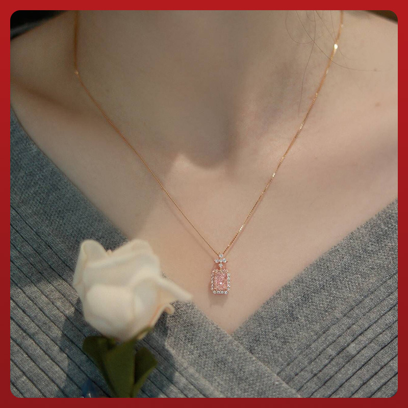 右手等待女神嫁衣冰莓粉高级感纯银设计减龄轻奢锆石项链吊坠女