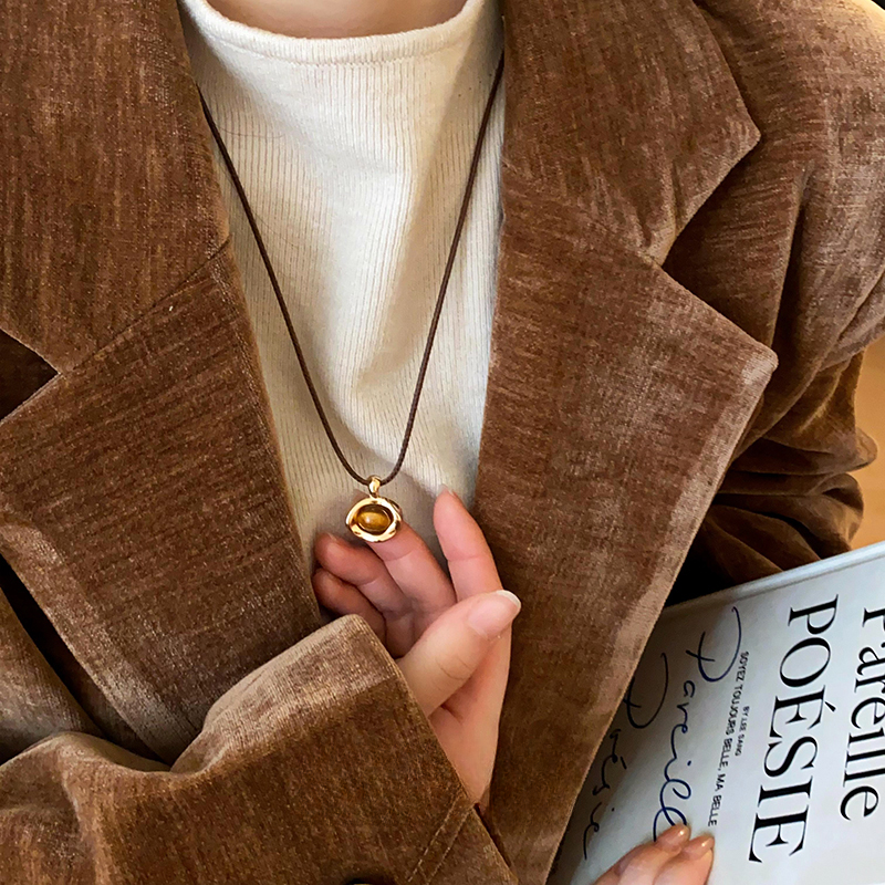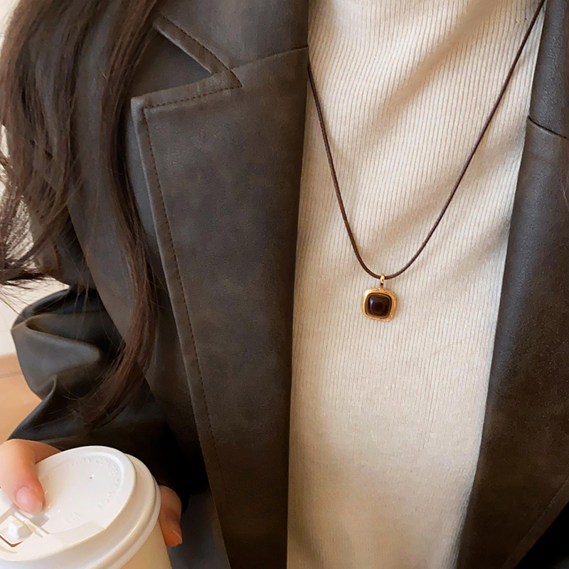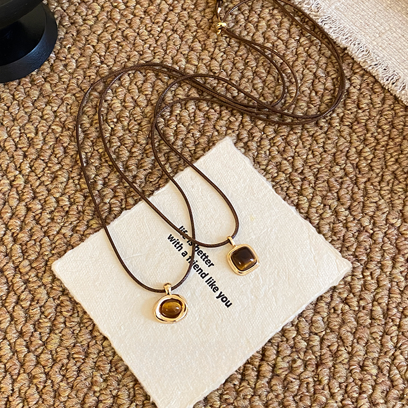 美拉德咖色皮绳项链女款精致轻奢高级设计感时尚百搭毛衣链配饰品