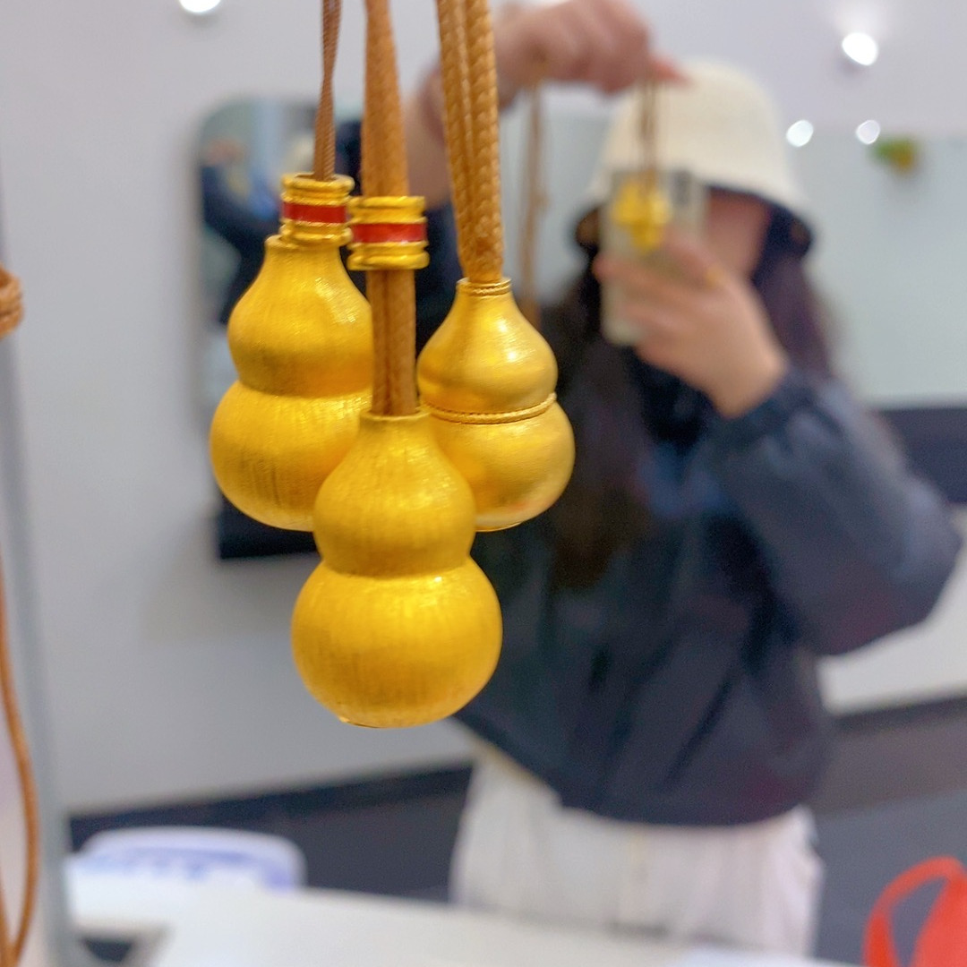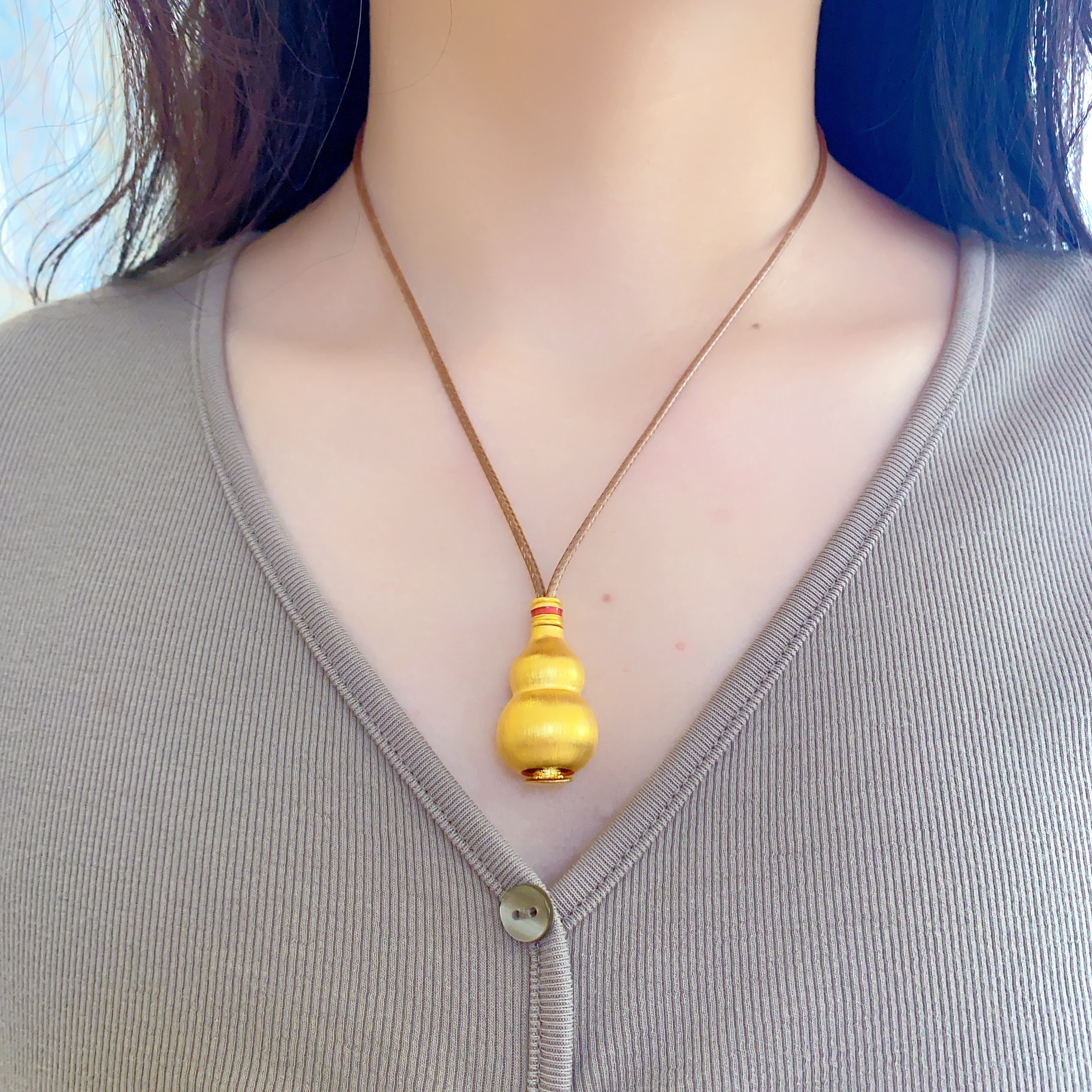 黄金包银吊坠女抽拉葫芦拉丝款吊坠新中式国风镶钻毛衣链送女友
