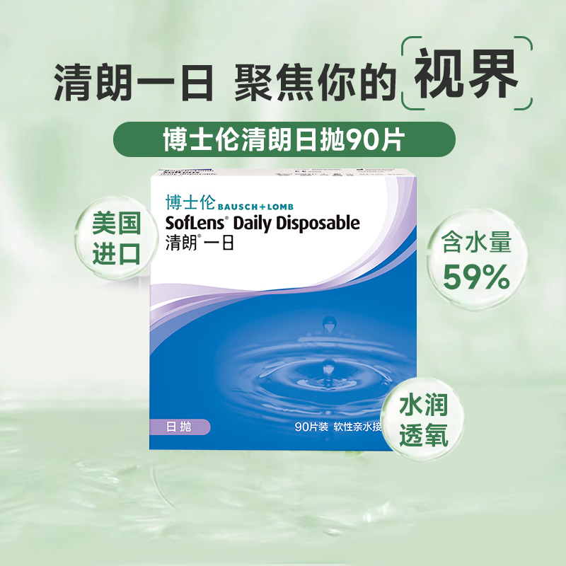 【自营】博士伦清朗日抛90片隐形眼镜透明近视清朗一日高含水进口