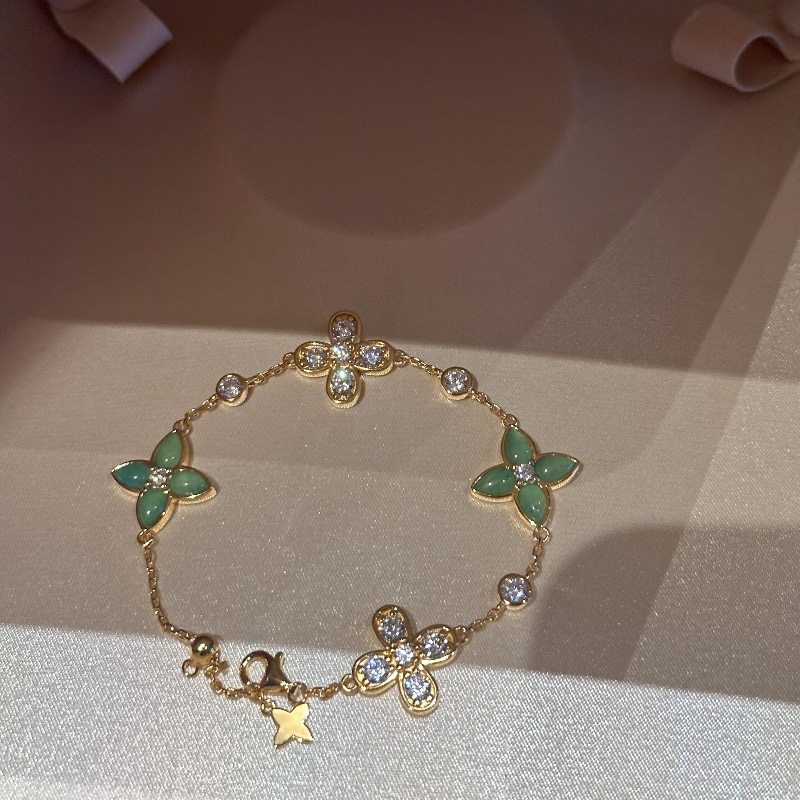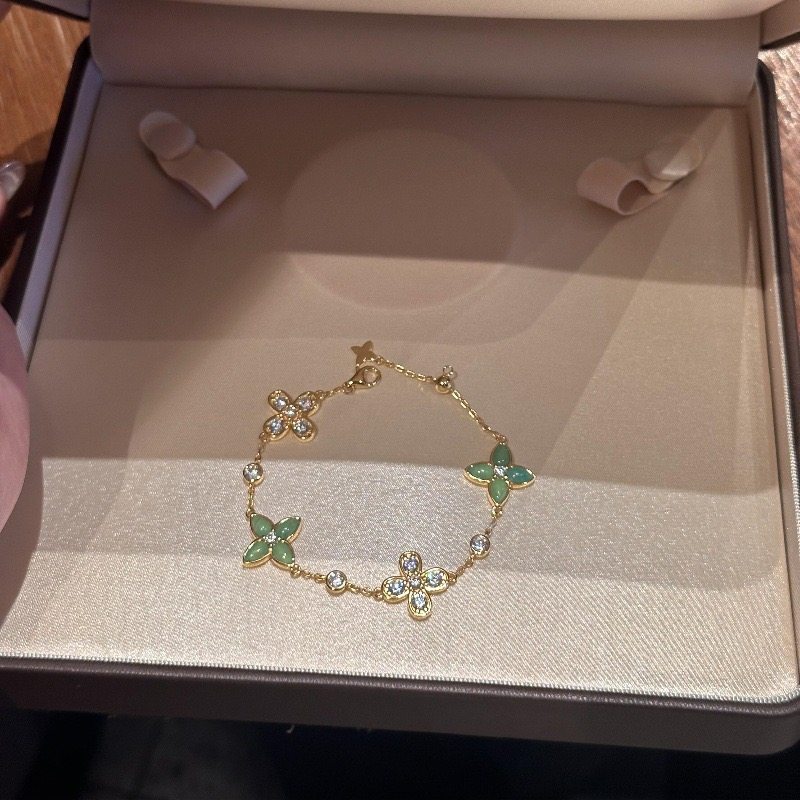 法式复古新中式绿玉髓碧玉四叶草手链女优雅气质小众显白时尚手饰