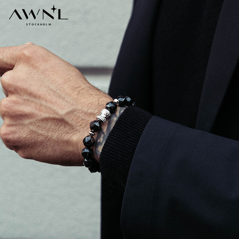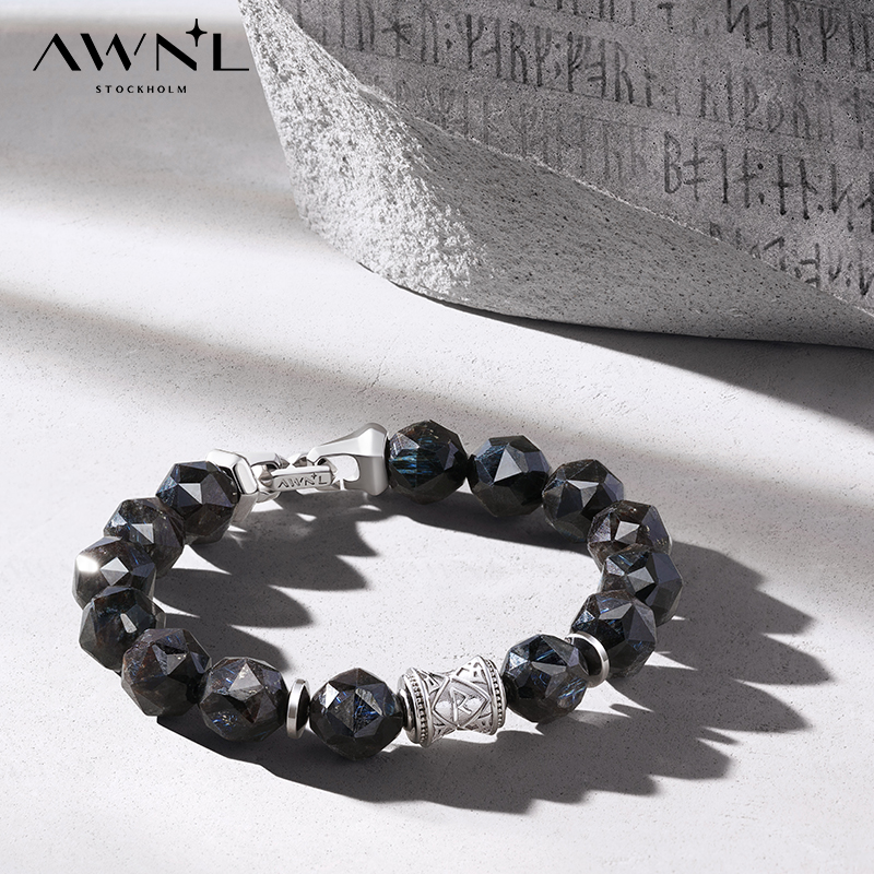 AWNL维京如恩努米特石财富成功手链银曜石男款小众设计礼物送男友