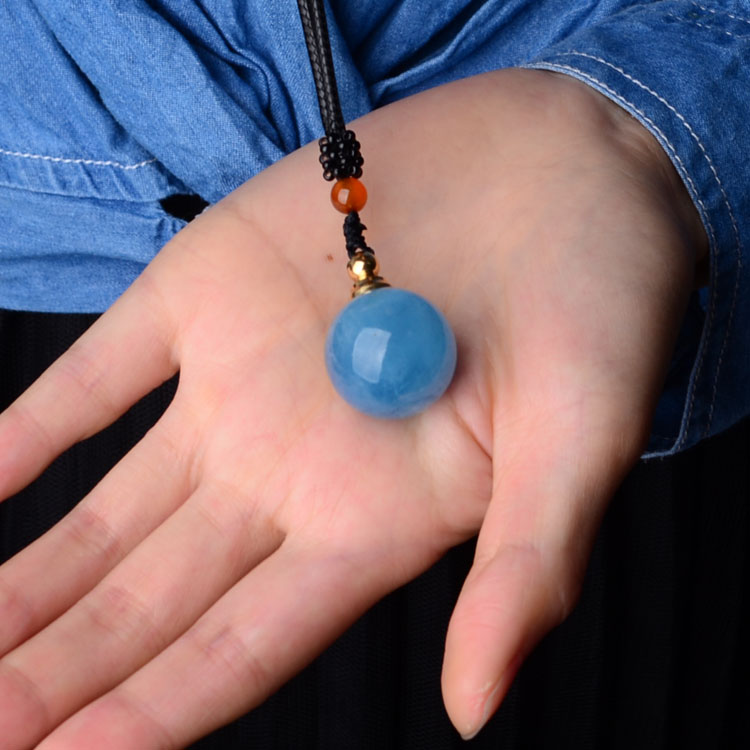 天然海蓝宝补水石香水瓶精油瓶吊坠女男冰种蓝色水晶项链饰品礼物