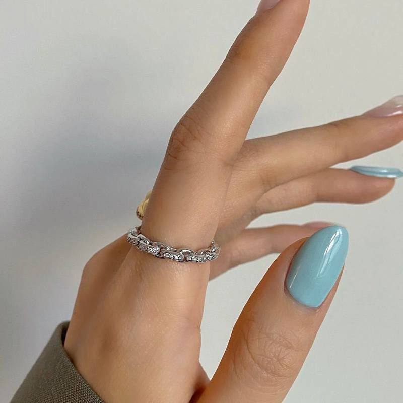 欧美ins极简风时尚个性圆圈镶钻时尚叠戴亮银戒指轻奢新款指环女