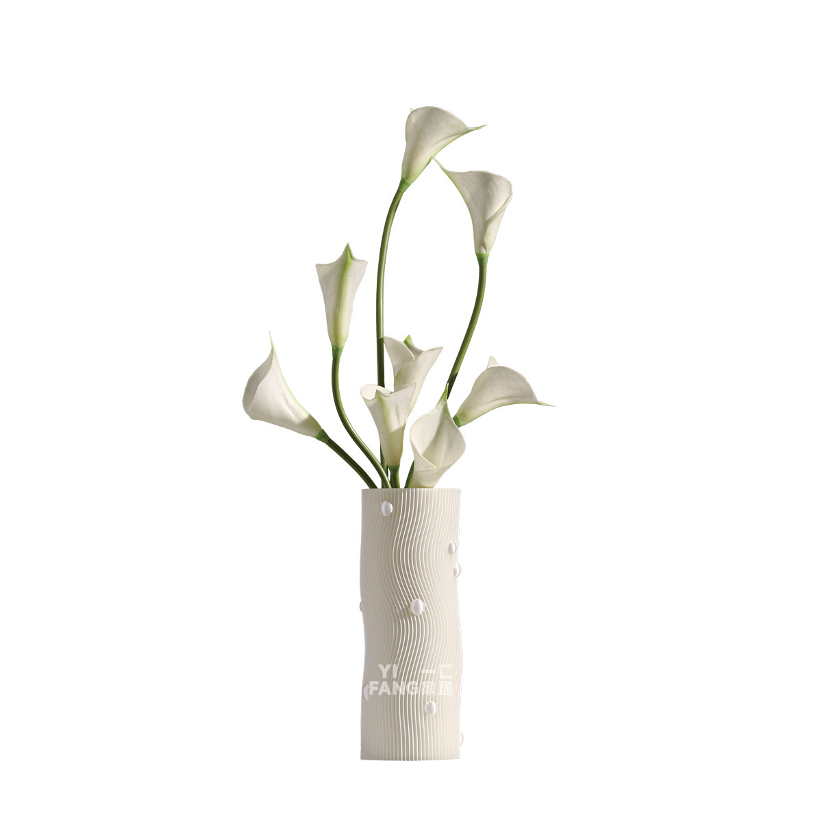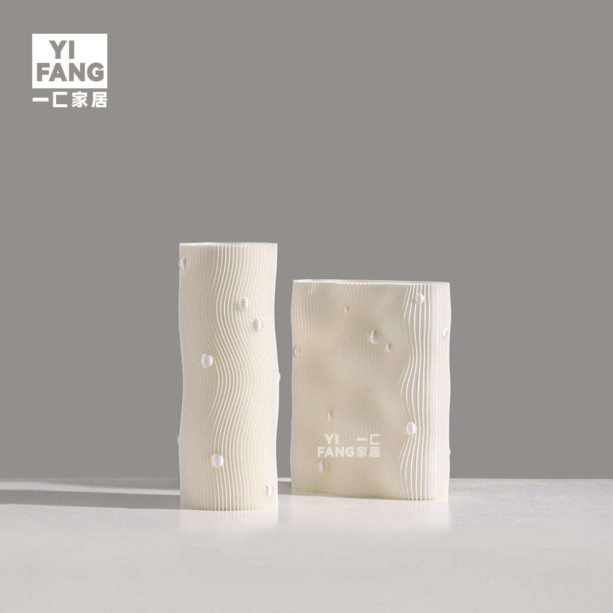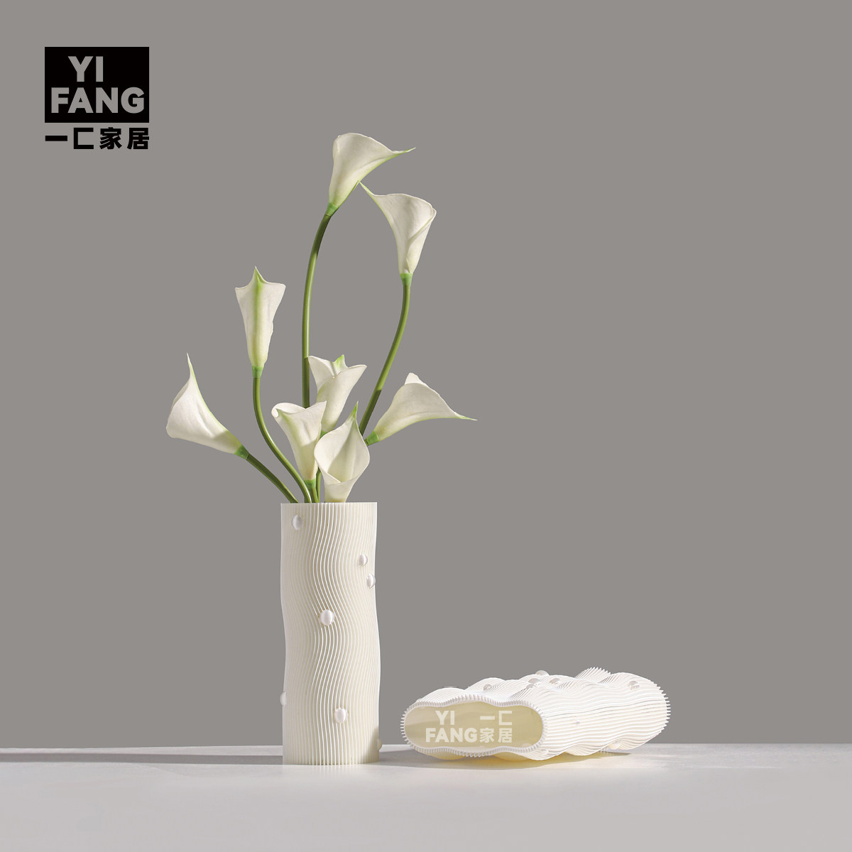 一匚 现代3D打印艺术条纹白色花器 样板间酒店餐厅民宿装饰品摆件