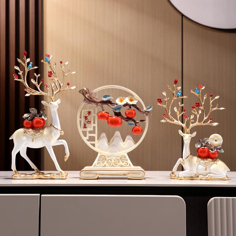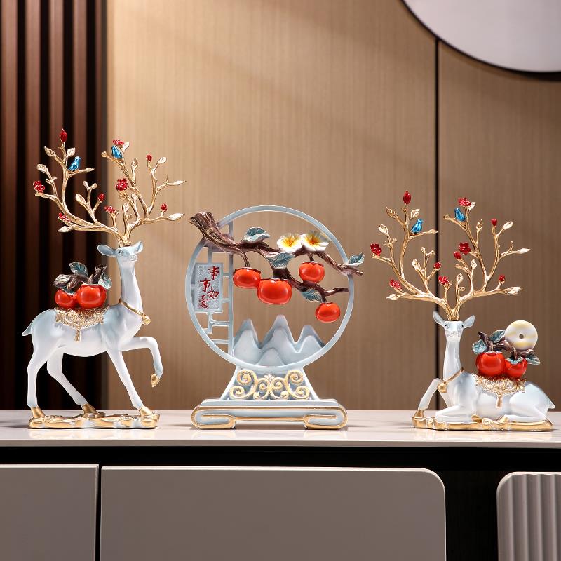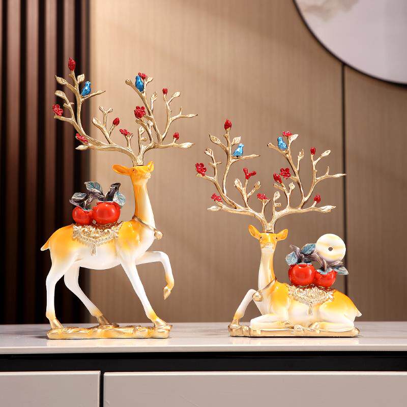 创意事事如意鹿摆件客厅电视柜酒柜玄关装饰品乔迁新居结婚礼物