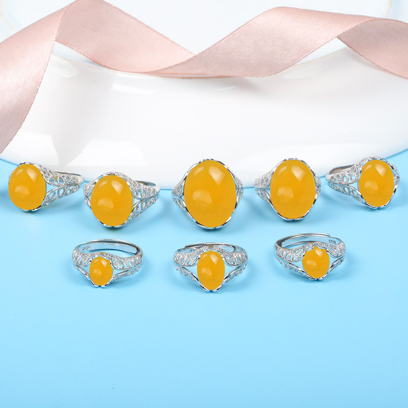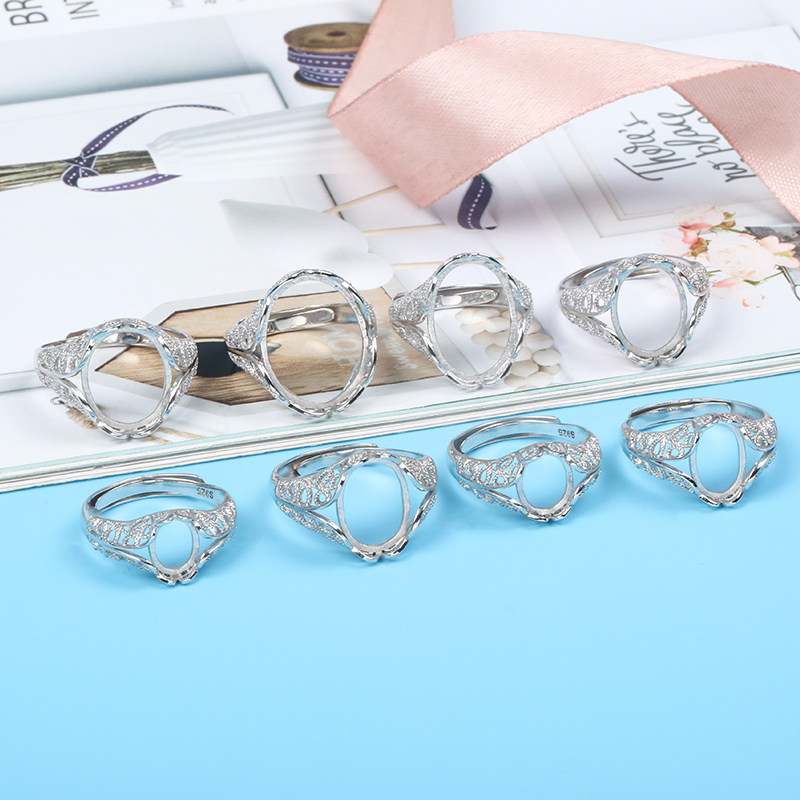 925银戒托空托7*9 8*10*14镶嵌玉石蜜蜡琥珀戒指托 8*12*16 15*20
