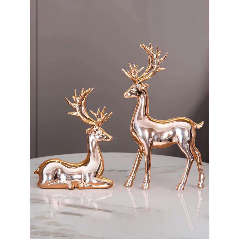 现代轻奢招财鹿摆件创意玄关书柜客厅酒柜装饰品乔迁新居礼物高档
