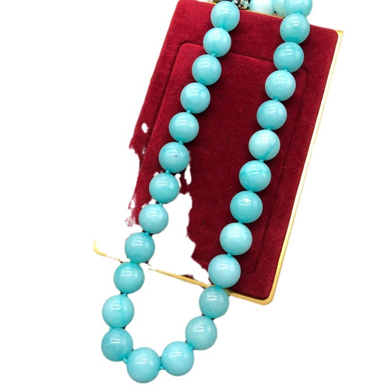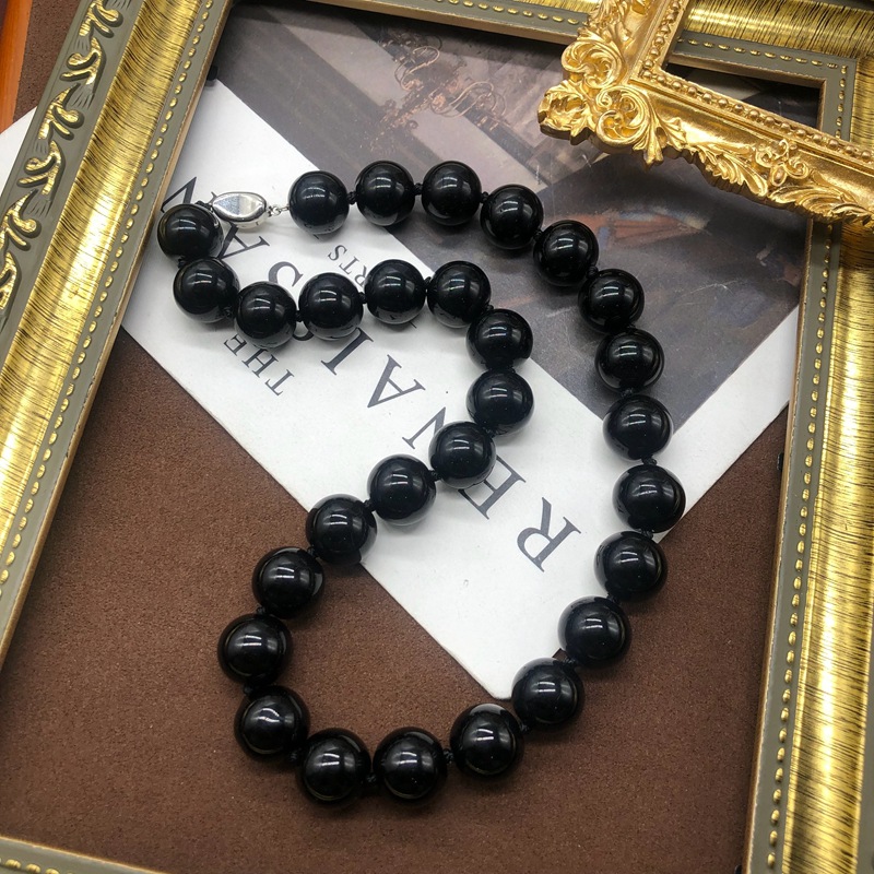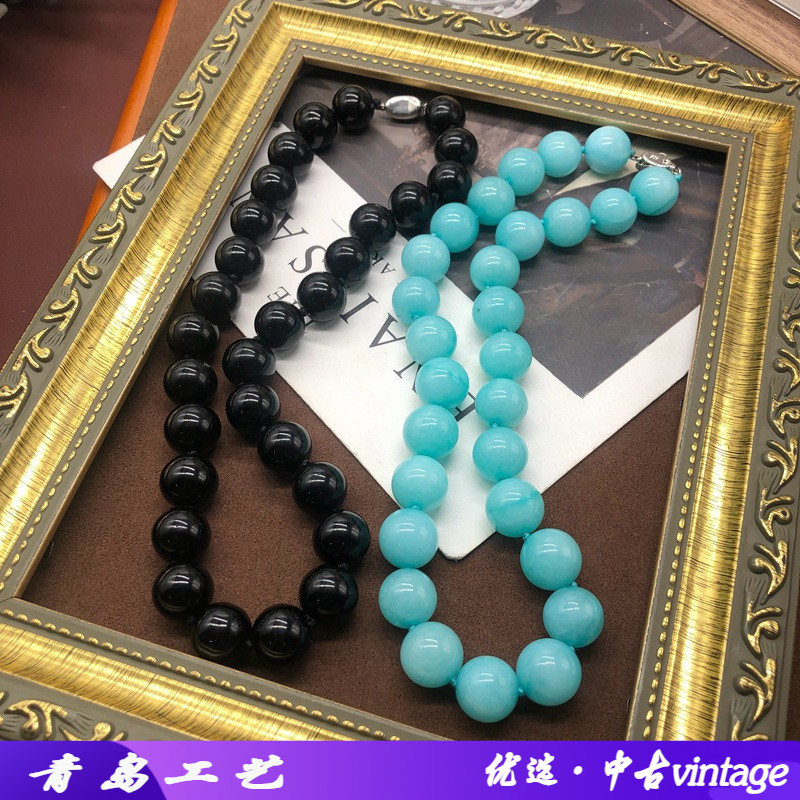 青岛中古复古蓝松石黑色圆珠项链打结欧美短款颈链毛衣链两色可选